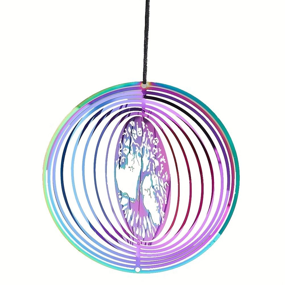 Home > 1pc Colorful Tree Of Life Wind Chime Spinner Laser Cut 3D Stainless Steel Sequins Garden Reflective Pendant Bird Scare Repeller, 3.94inch