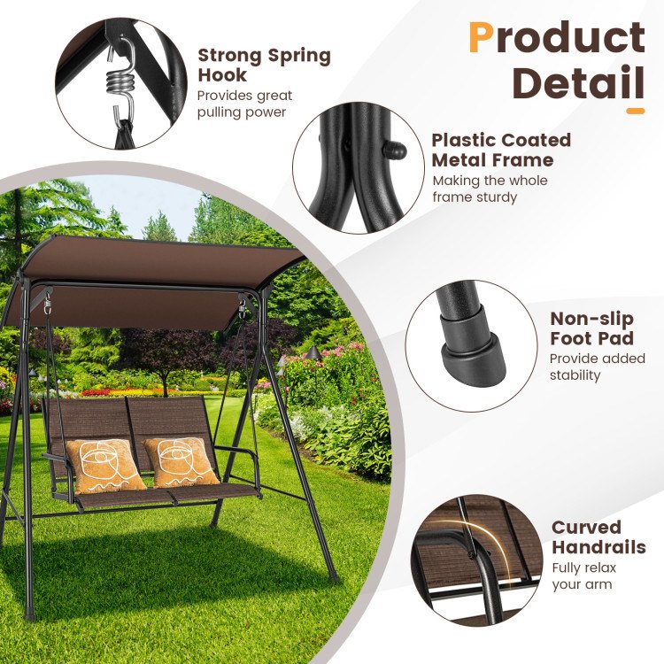 -2-Seater porch swing allows you and your friends to enjoy relaxing time together.