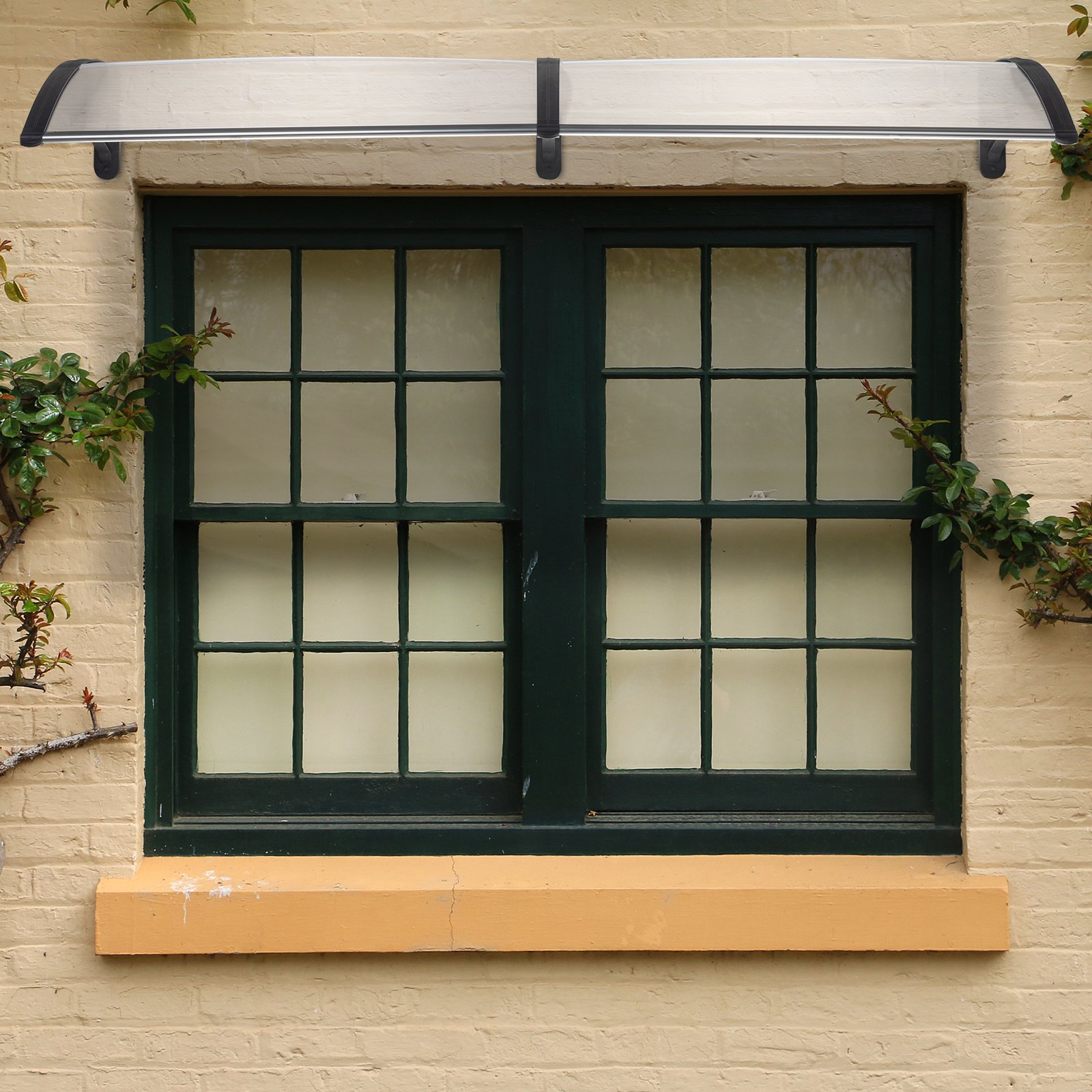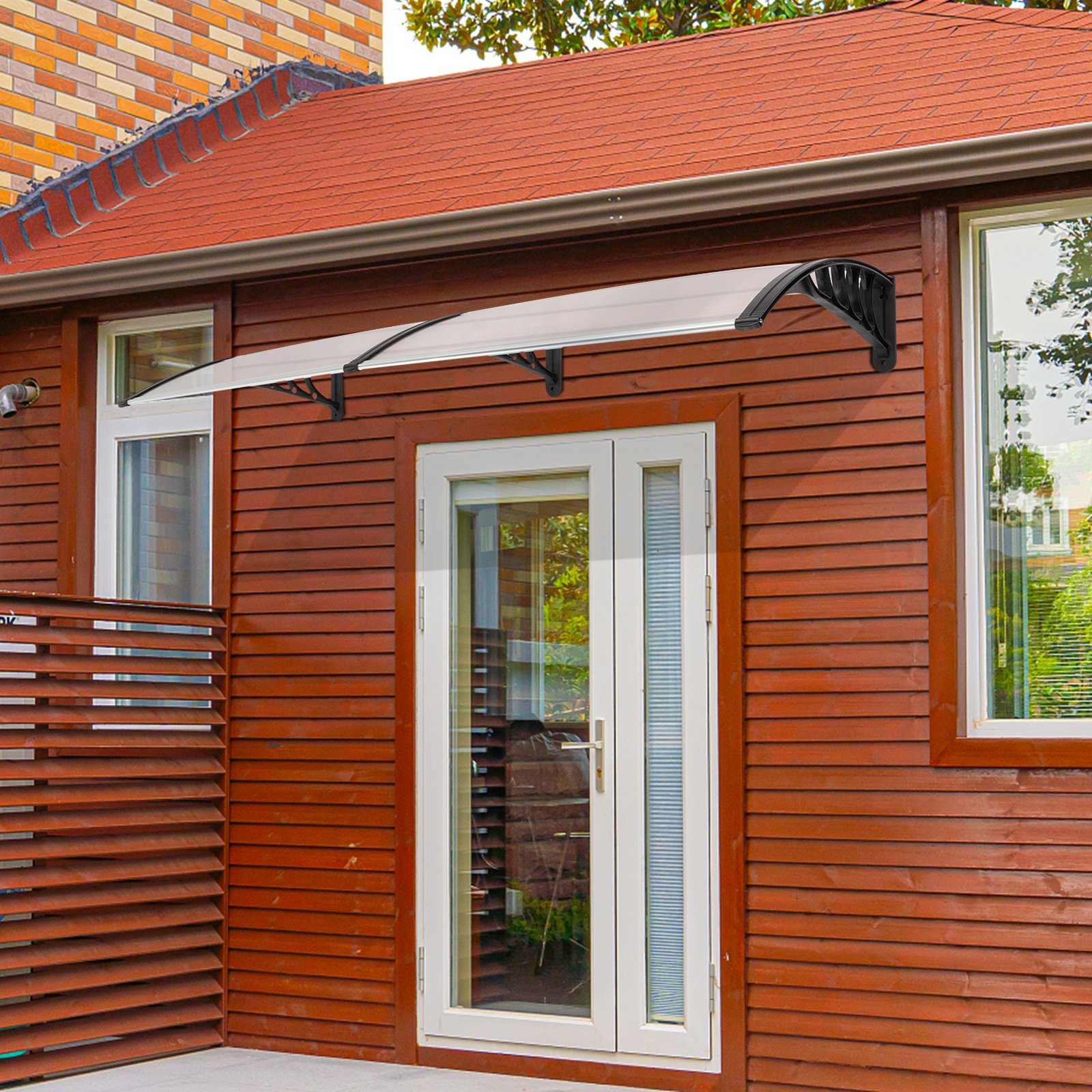 Introductions:Build a mini shelter for resisting rain or scorching sun at the gate or window! You may feel it wonderful by using our 200 x 100 Household Application Door & Window Rain Cover Eaves Canopy! This is a superb design integrating high-class ABS and polycarbonate materials, durable and wear-resistant to use. Aluminum bracket could strongly sustain this canopy. It bulges to shape a small shield. Quite easy to install and remove! It also acts a decoration for your house! Don't miss such a good chance!Features:1. Refine workmanship by using premium materials2. Guaranteed durability and quality, unused3. Solid structure, good strength and easy operation4. It is washable and quick dry5. Shape a small shield for resisting rain or scorching sun coming into your house6. Perfect for house decorationSpecifications:1. Brackets Material: ABS2. Hollow Sheet Material: 5.0mm Polycarbonate3. Fixing Bars Material: Aluminum4. Color: Black Bracket5. Dimensions: (78.74 x 39.37 x 9.84)" / (200 x 100 x 25)cm (L x W x H)6. Weight: 9.26 lbs / 4.2 kg7. Suitable for: Domestic Eaves CanopyPackage Includes:1 x Eaves Canopy