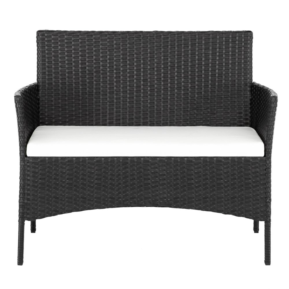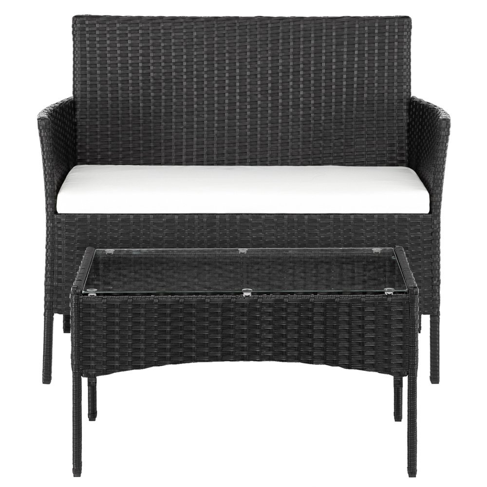 2pcs Arm Chairs 1pc Love Seat & Tempered Glass Coffee Table Rattan Sofa Set Black