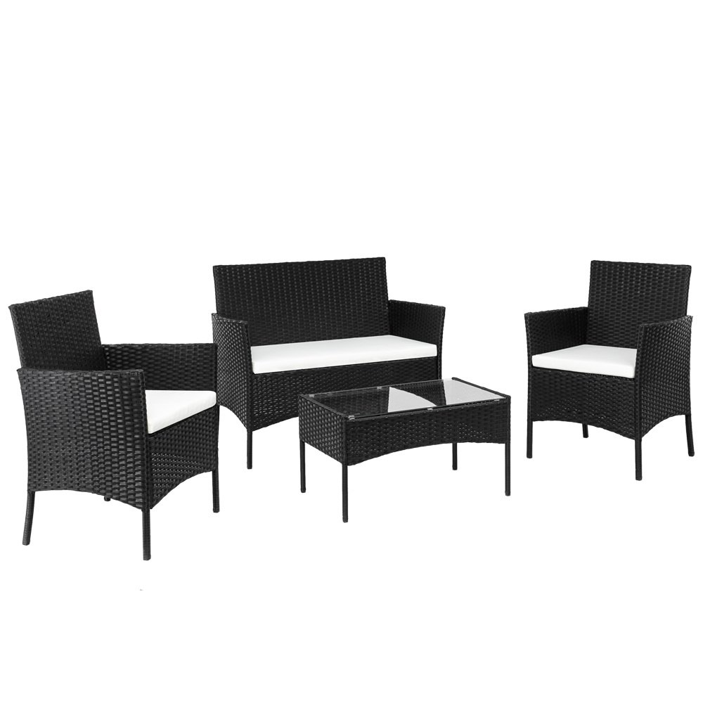 Introductions:Are you looking for a comfortable sofa set for your family? If so, this 2pcs Arm Chairs 1pc Love Seat & Tempered Glass Coffee Table Rattan Sofa Set is highly recommended to you. Unlike normal leather sofa, this rattan sofa will give you a different using experience. Adopting high quality PE rattan and iron frame, it features stable, sturdy and durable. With soft cushion, it also can ensure softness and comfortable seating experience. It includes 2pcs arm chairs, 1pc love seat and 1pc tempered glass coffee table, which can meet your daily demand. So what are you waiting for? Don't hesitate, it's worth buying!Features:1. Made of high quality PE rattan and iron frame, stable, sturdy and durable2. It has a long service time, durable in use3. This sofa set can meet your daily need4. Soft cushion ensures comfortable seating experience5. Concise design and exquisite workmanship6. It can coordinate with any style of decorationSpecifications:1. Material: PE Cane Iron Polyester Cloth Upright Cotton2. Color: Black3. Cushion Fabric: Polyester 180g White4. Upright Cotton: 1000g5. Glass: 5mm Thick Tempered Glass6. Rattan:8.5x1.1PE Rattan (Black Four-Thread Rattan)7. Single Chair: (23.03 x 21.26 x 32.28)" / (58.5 x 54 x 82)cm(L x W x H)8. Double Chair: (39.76 x 21.26 x 32.28)" / (101 x 54x 82)cm(L x W x H)9. End Table: (27.95 x 16.14 x 15.35)" / (71 x 41 x 39)cm(L x W x H)10. Total Weight: 51.26lbs / 23.25kgPackage Includes:2 x Single Chair1 x Double Chairs1 x Tea Table2 x Single Seat Cushions1 x Double Seat Cushions1 x Glass