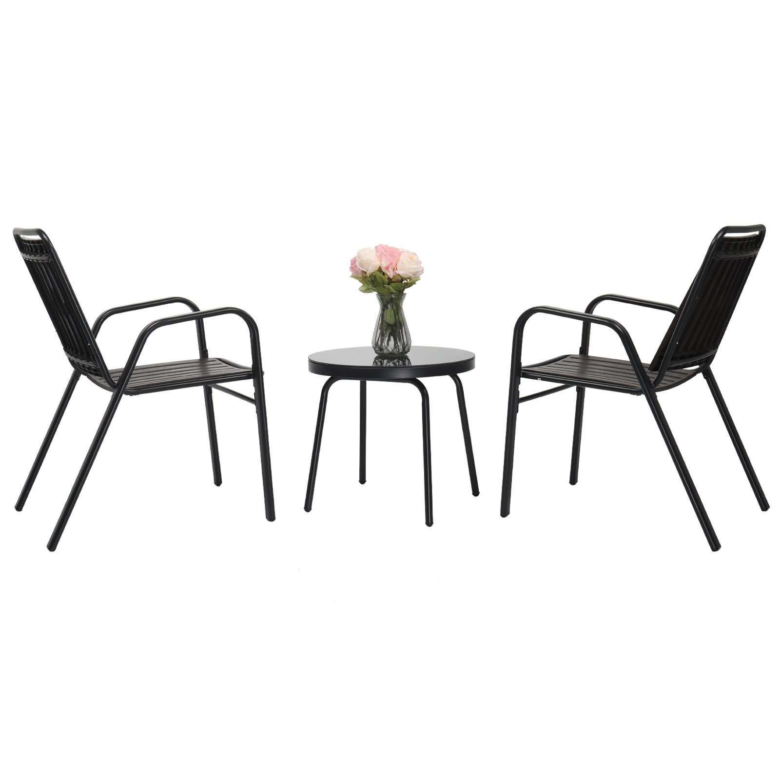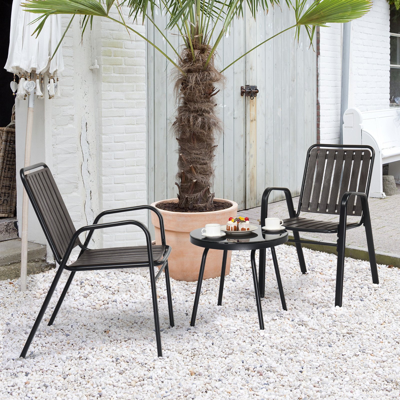 Home > 3-Piece Patio Bistro Table Set, Outdoor Furniture Set with 2 Stackable Patio Dining Chairs and Glass Table for Yard Balcony Porch, Black and Coffee