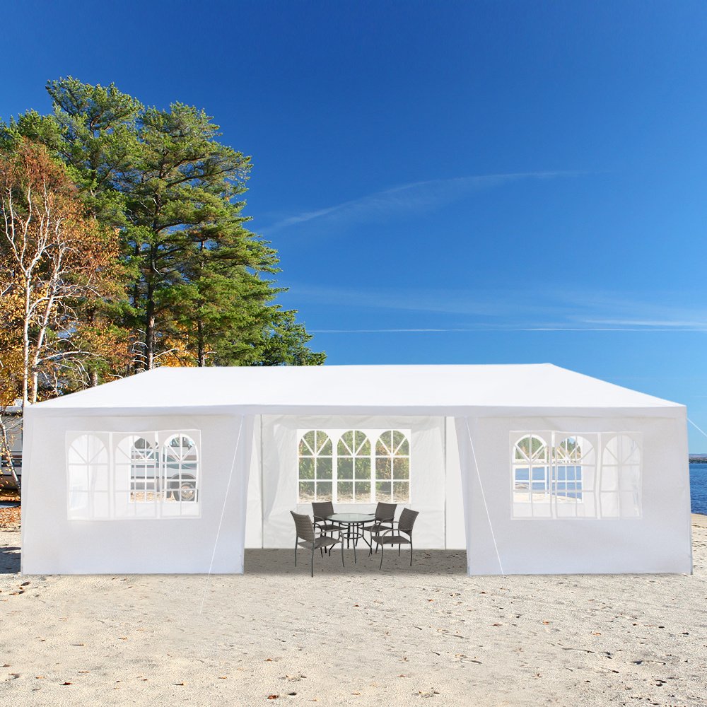 Introductions:Complete your party with this spacious and versatile Outdoor Party Tent! It is definitely a must-have for a party in your backyard or for a commercial event outdoors. Our outdoor party tent offers shelter from the sun rays and light rain, so as to provide the perfect space for serving food and drink. And the tent is a wonderful choice to add party atmosphere that will put all of your guests in the mood to celebrate.Features:1. It is suitable for wedding, camping, parking and other parties2. Each wall has a clear window to ensure maximum lighting in the tent3. High quality PE cloth provides excellent shelter from the sun rays and light rain4. Our tent uses threaded pipe connection to offer stronger support5. Easy to assembleSpecifications:1. Dimensions: (354.33 x 118.11 x 102.36)" / (900 x 300 x 260)cm(L x W x H)2. Weight: 38.58lbs / 17.5kgPackage Includes:1 x PergolaNotice:1. Do not use the tent in windy and rainy days, please fix the ropes and ground nails when using2. Be sure to install the product according to the instructions3. The point of purchase of the product is a spiral connection between the tube and the tube, which is more stable