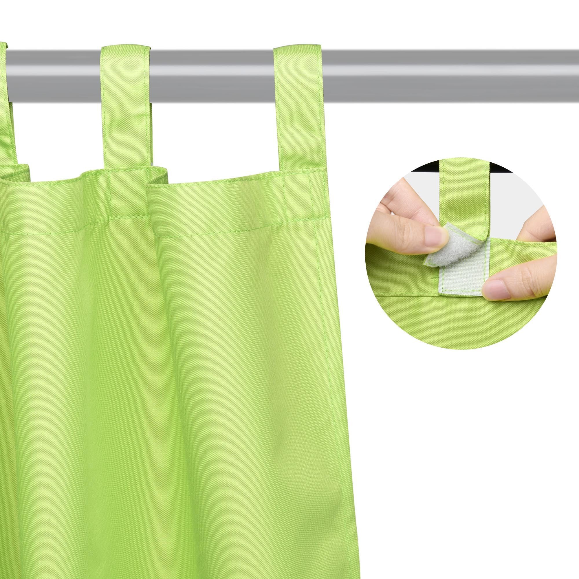 - Hook & Loop Fastener for Easy Installing - 4 pcs 54"x84" Outdoor Curtain Panels, tab top with hook & loop fastener, much easier for attaching to the rod, 4" long tab top perfectly fit curtain rod with diameter up to 2"- UV 30+ Protection & Fade Resistance - Effectively blocks 96.6% of harmful UV ray, enjoy the outdoor view and fresh air without worrying burning sunlight; Color fastness up to European Standard level 4 keeps original color under sun exposure for a long-lasting beauty- Durable Fabric - 160g polyester fabric with PA coating features wrinkle and wear resistance; Water resistance also for protecting you from drizzling- Convenient to Maintain - Machine-washable for easy cleaning; Simply put it into washing machine for cleanout, spending no time on exhausting maintaining- Wide Application - Compatible with pergola to create an elegant and vintage outdoor decoration, protects your privacy and reduce the temperature by shading on sunny days; Great for spending your leisure time and enjoying the fresh air at courtyard, patio, garden, lanai, porch, or any other outdoor area