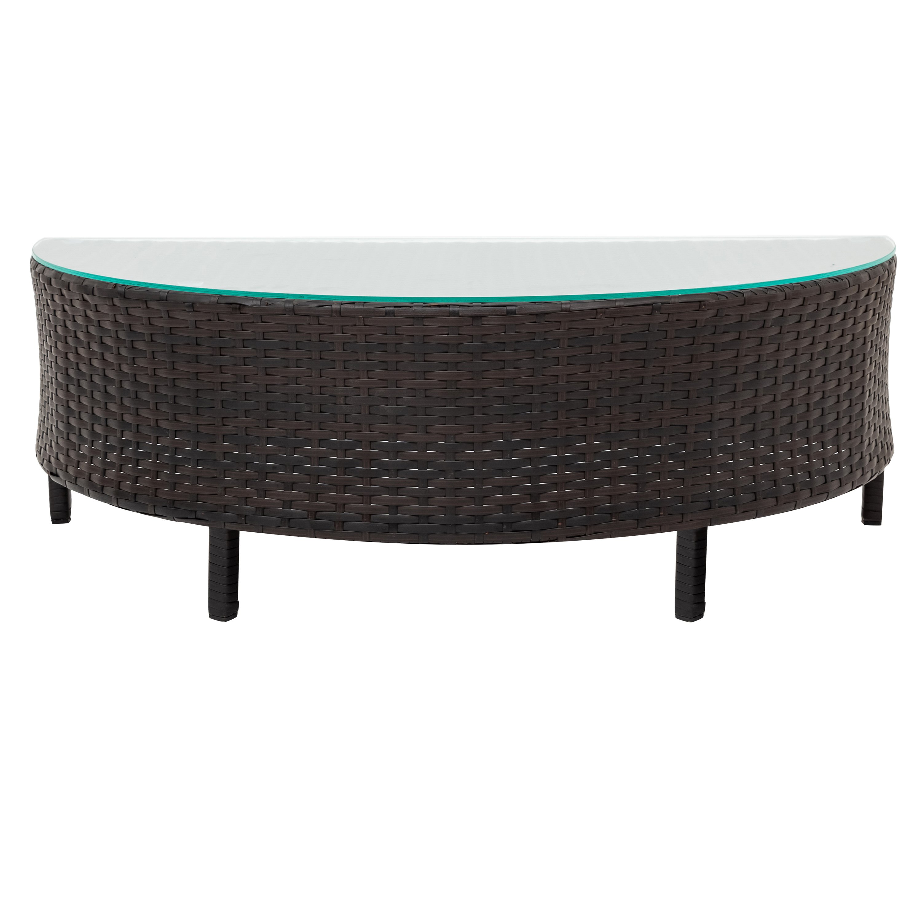 Home > 5 Pieces All-Weather Brown PE Rattan Wicker Sofa Set Outdoor Patio Sectional Furniture Set Half-Moon Sofa Set with Tempered Glass Table