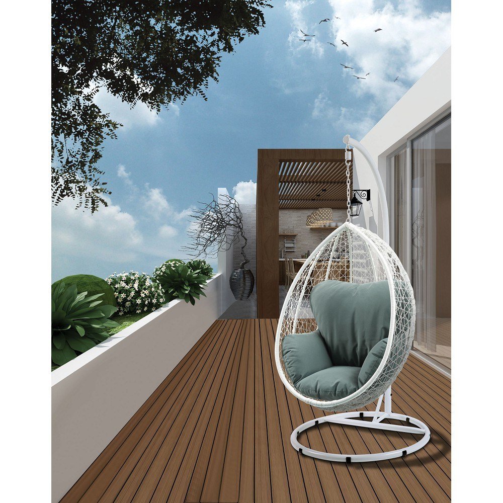 RomanceProviding extra seating in your outdoor space, the Simona is a modern take on the classic patio swing chair. Intersecting white and black wicker creates a natural contrast and eye-catching style. Decorative versatility comes in the form of the two fabric for seating, green and white fabric that furthers the transitional styling to complete the look.Product Details•KD, Patio Swing Chair & Stand• Seat Cushion Included (Removable)• Includes: Swing Chair, Stand, Cushion• CONSTRUCTION: Frame White Finish, Wicker (3mm Round) & Steel Powder Coated (45 x3 mm)• SEAT CUSHION: Beige Fabric• Material: Green Fabric (Solid Pattern)