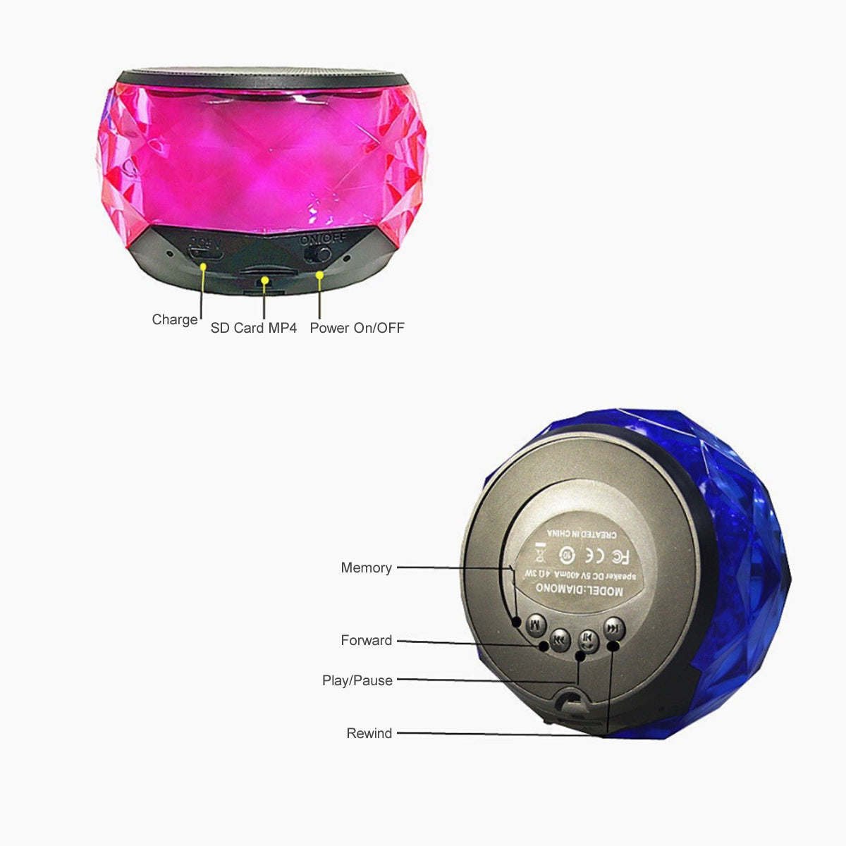 This solo LED speaker witha diamond shape prism plays the colorful medley of LED glow that looks like candies in motion. They look small but produce the most effective and clear sound as the large speaker does; and you will love them so much; that you will get more! Buy in multiples to connectany two speakerstogether. Place them indifferent rooms of your house and have the entire family thrilled as they enjoy many of your family's favorite tunes individually; and altogether at the same time!