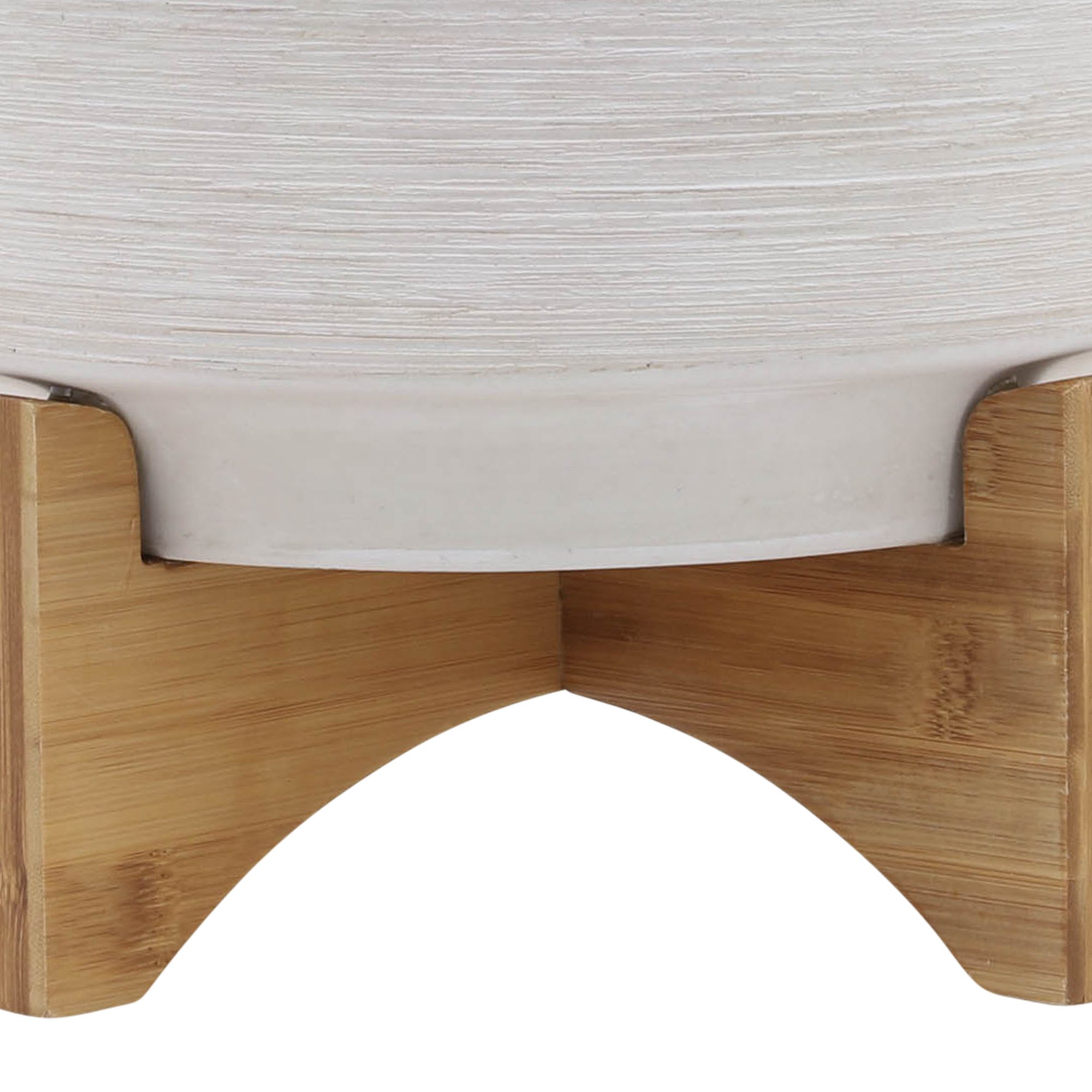 CERAMIC 10" PLANTER ON WOODEN STAND, GRAY