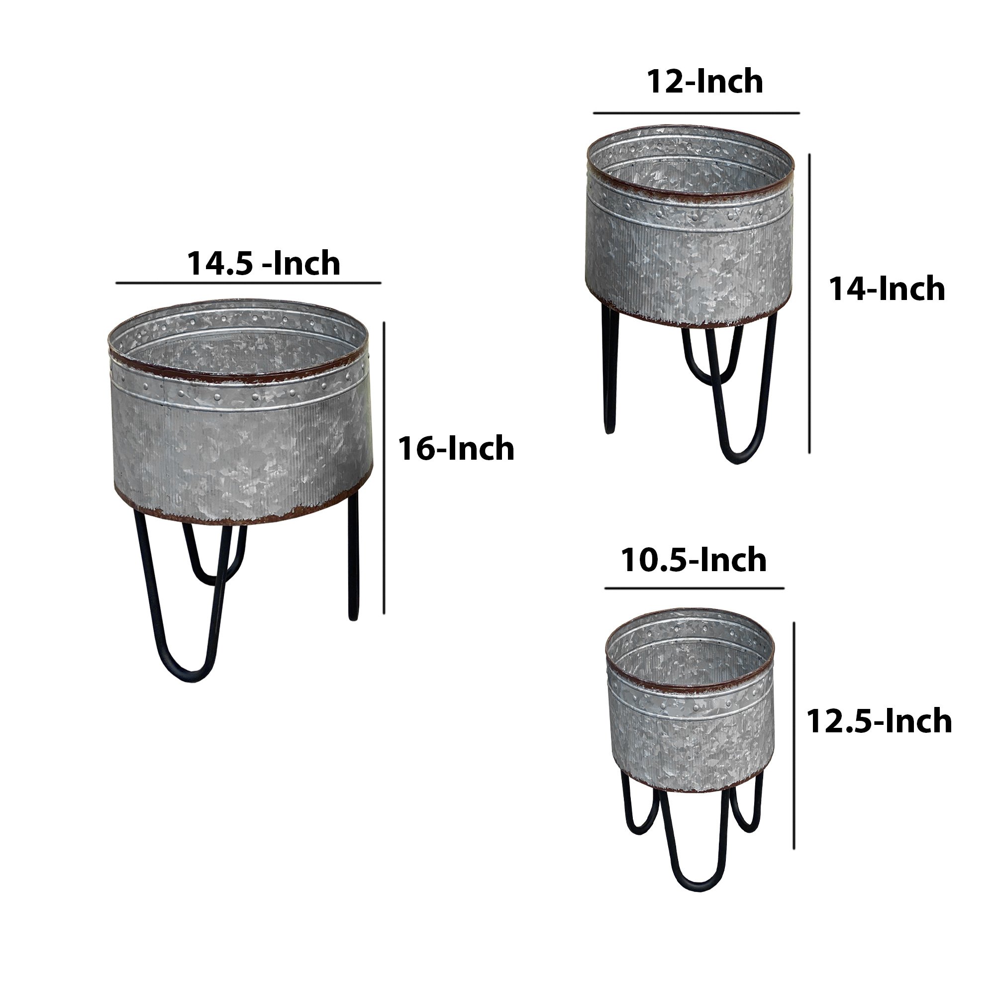 Galvanized Sheet Planter Tubs, Iron Powder Coated Hairpin Legs, Set of 3, Gray, Black