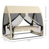 Features:- Outdoor swing bench with steel construction, quality polyester and mesh- Double usage as a 3 person outdoor porch swing or a single person bed- Porch swings outdoor features mesh netting with zippers to prevent pesky unwanted guests- Padded cushion offers extra comfort- Side storage bag is included for storing small personal items- High load bearing capacity of 660 lbs. total- Mesh curtains can be fastened to ensure they stay in place- Breathable mesh seat for comfort on hot day- Great choice to put on the beach, in your patio, yard, or other outdoor area- Assembly requiredSpecification:- Color:Coffee Fabric, Charcoal Gray Frame- Materials: Steel, Breathable Mesh, Polyester, Mesh Netting- Overall Dimensions: 94.5" L x 55.1" W x 77.6" H- Seat Size: 74.4" W x 18.7" D- Seat to Floor Height: 19.7"- Bed Size: 74.4" L x 40.9" W- Seat & Back Cushion: 74.4" L x 20.1" W x 2" T- Weight Capacity: 660 lbs.Package Includes:- 1 x rocking chair- 1 x Manual