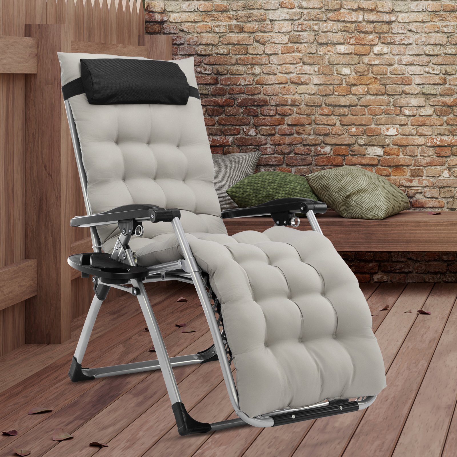 Home > Infinity Zero Gravity Chair with Pad, Patio Chairs with Pillow and Utility Tray Adjustable Folding Recliner for Deck,Patio,Beach,Yard,Grey
