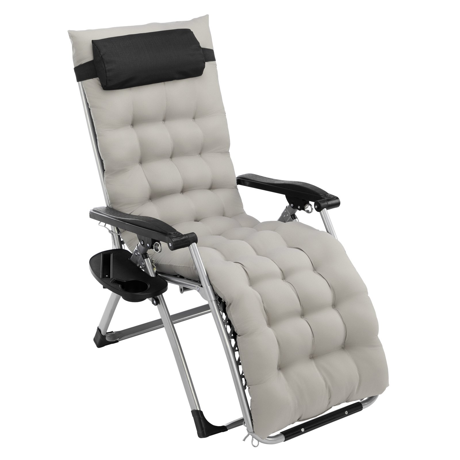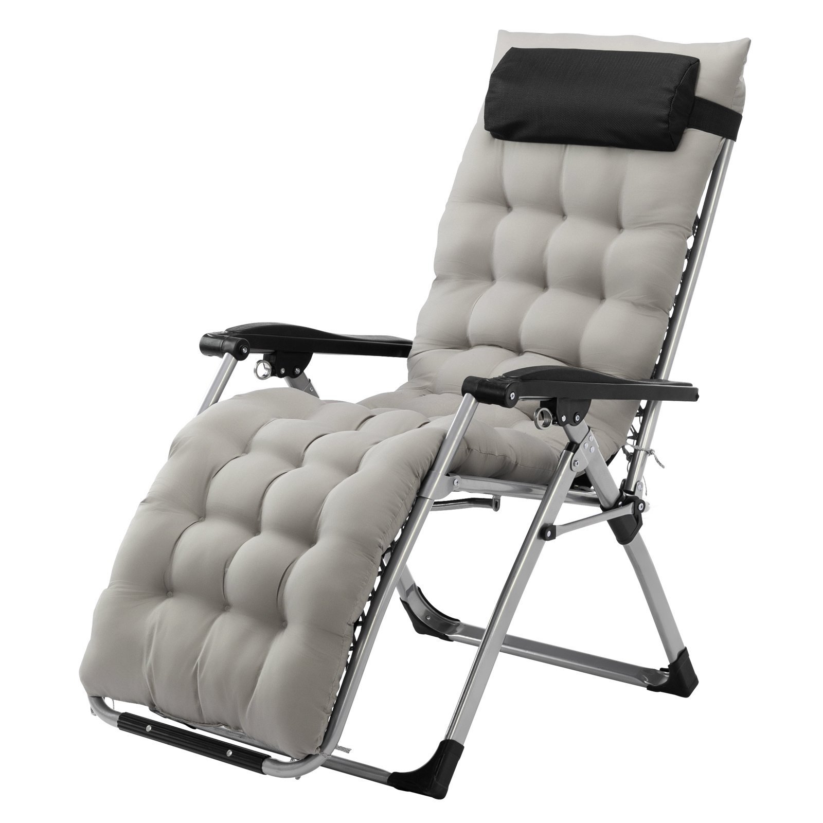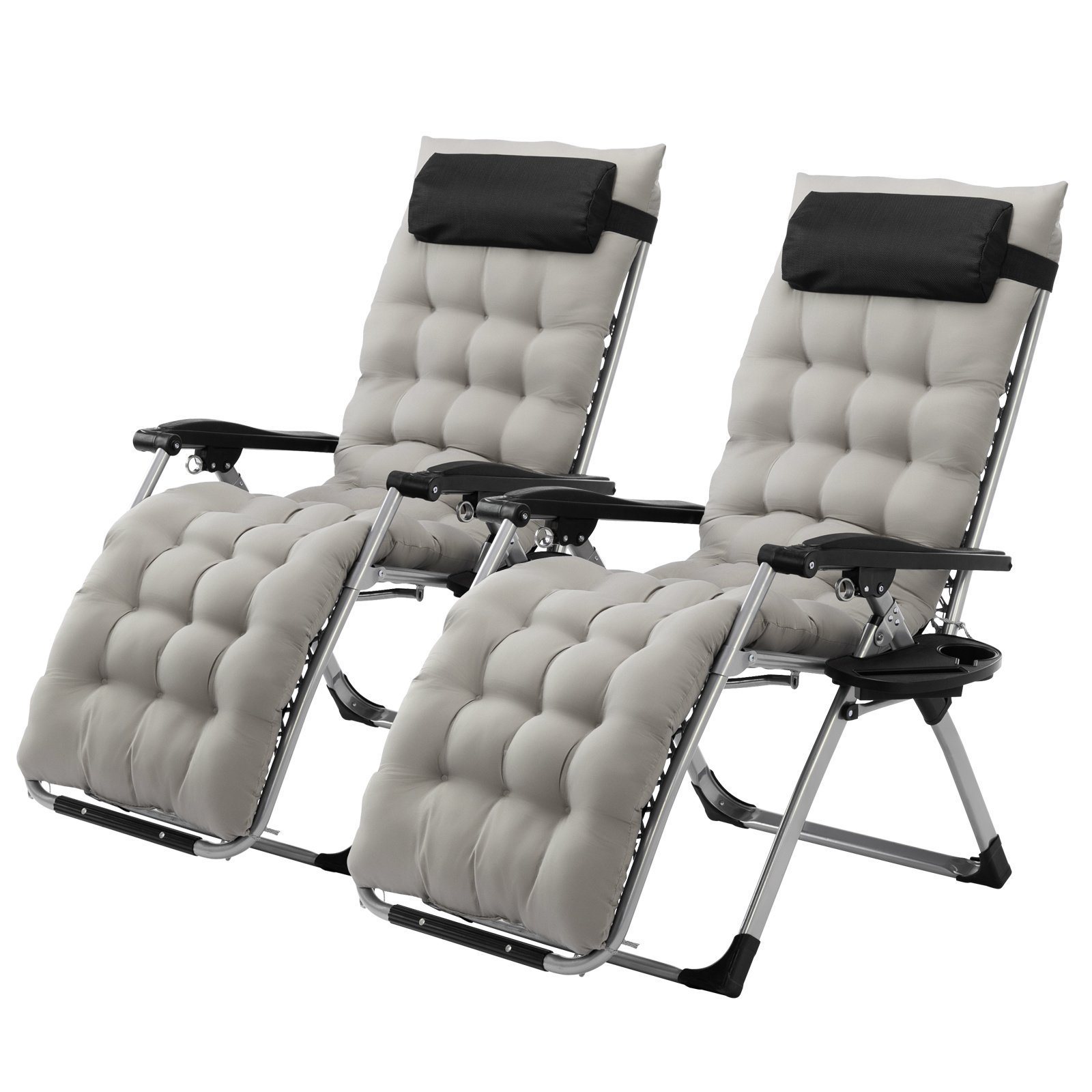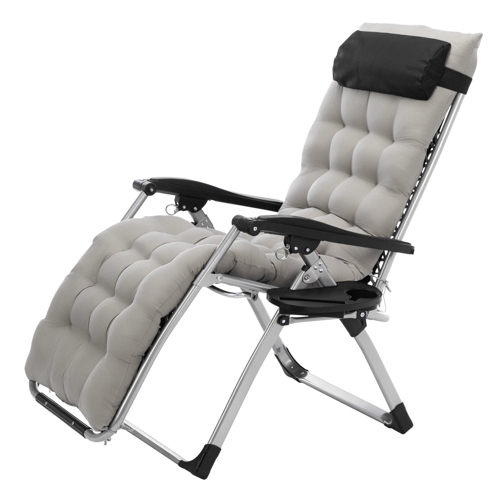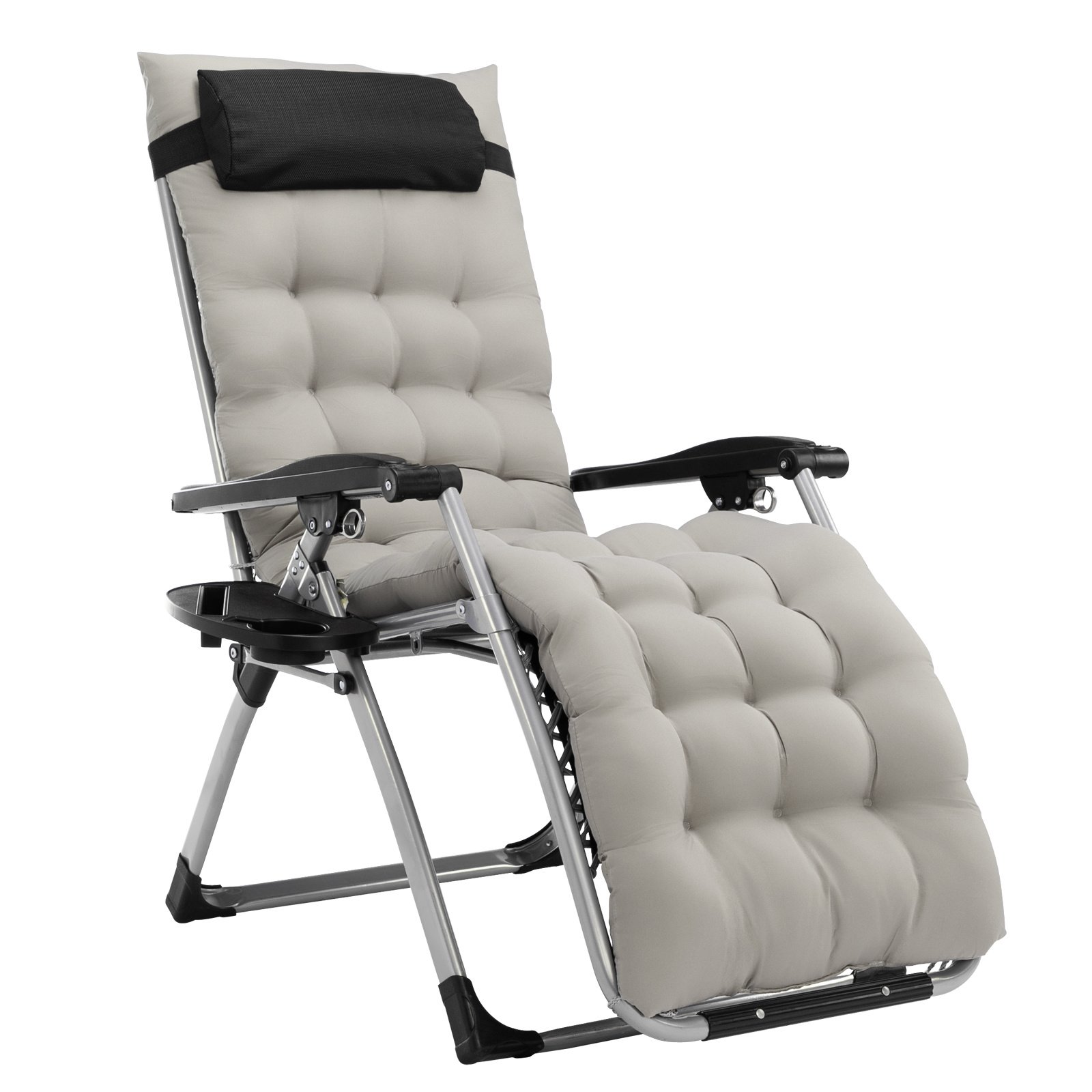 Infinity Zero Gravity Chair with Pad, Patio Chairs with Pillow and Utility Tray Adjustable Folding Recliner for Deck,Patio,Beach,Yard,Grey