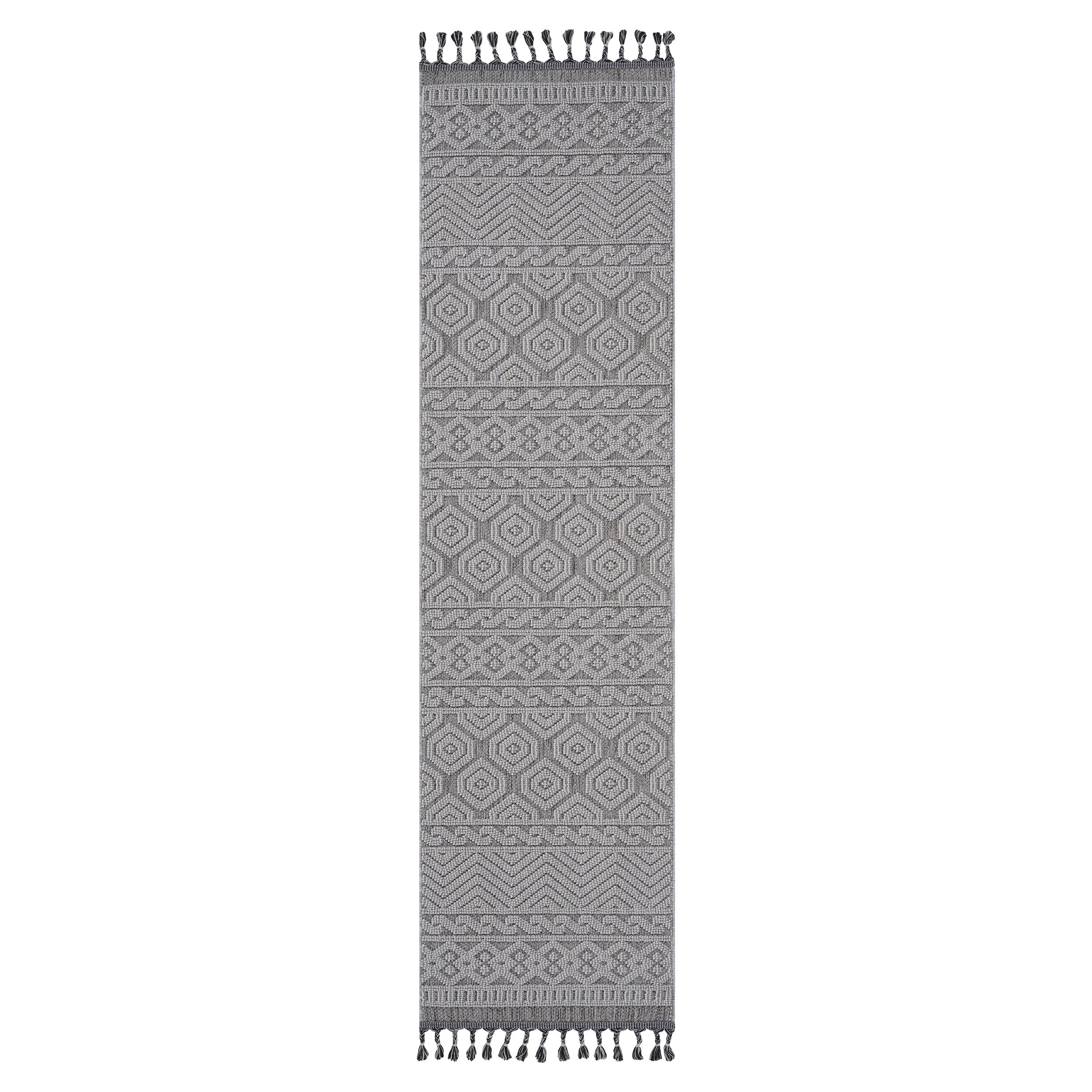 NAAR Guros Collection 2X8 Grey/White /Geometric Indoor/Outdoor Area Rug