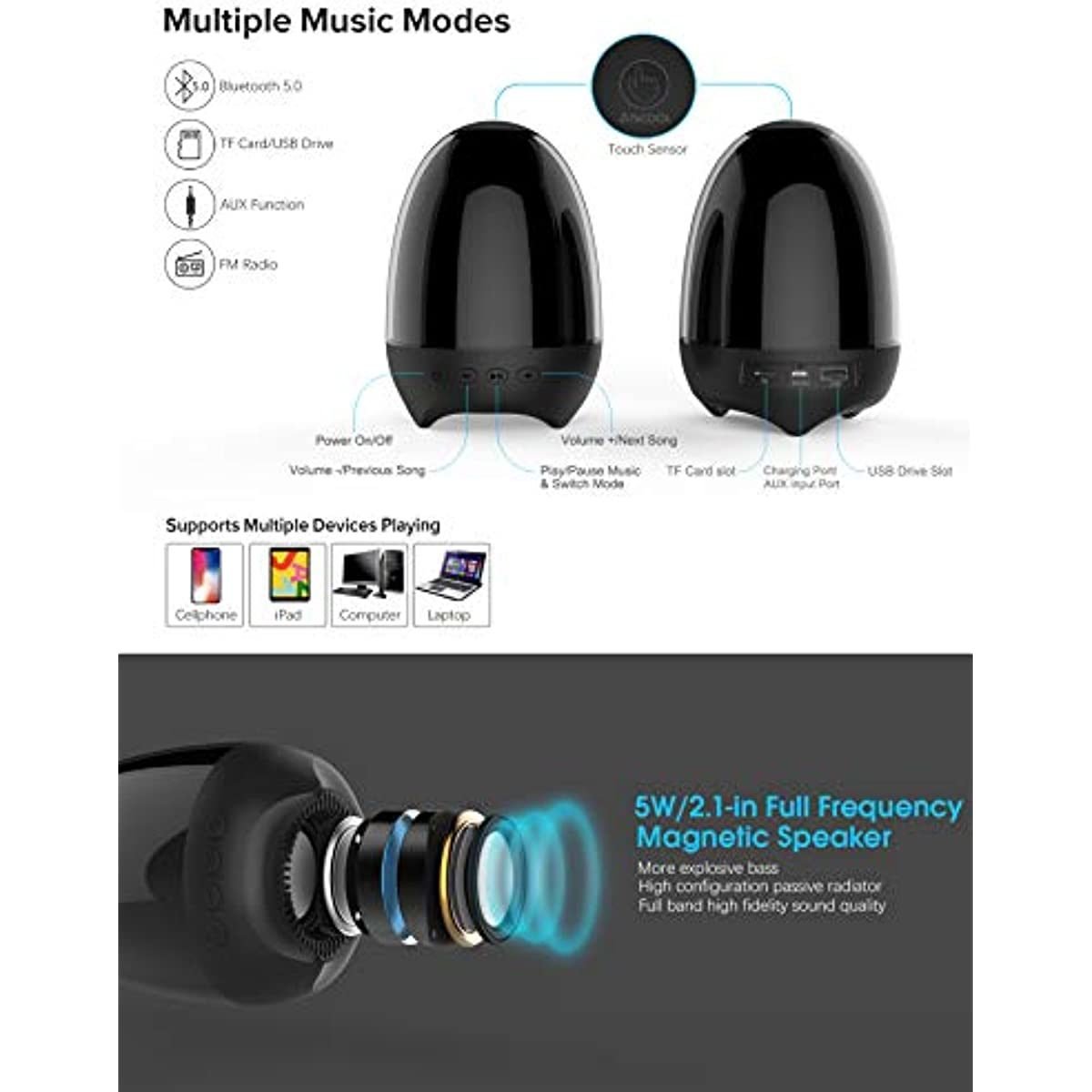 [HIGH FIDELITY STEREO SOUND BLUETOOTH SPEAKER]The 5w/2.1-In Full Frequency Magnetic Speaker Features More Explosive Bass; High Configuration Passive Radiator And Full Band High Fidelity Sound Quality. This Speaker Can Play Music Via Bluetooth; TF/USB Card Connections And Aux Input; In Additional; It Also Can Be Used As An Fm Radio. It Also Has a Built-In Mic To Support Hands-Free Calling; So The Audio Buttons Can Also Be Used To Answer/Hang-Up Calls And So On.