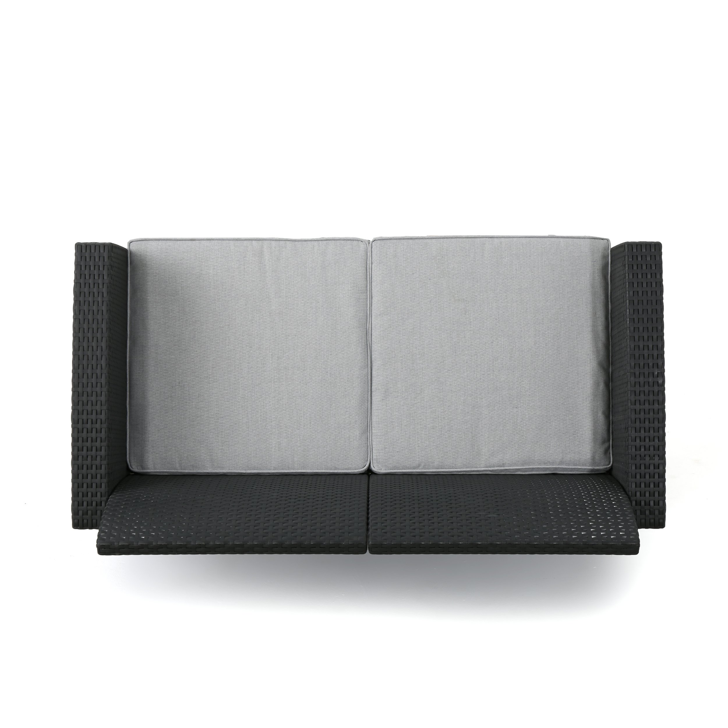 Outdoor Faux Wicker Rattan Style Chat Set with Water Resistant Cushions, 4-Pcs Set, Charcoal / Light Grey