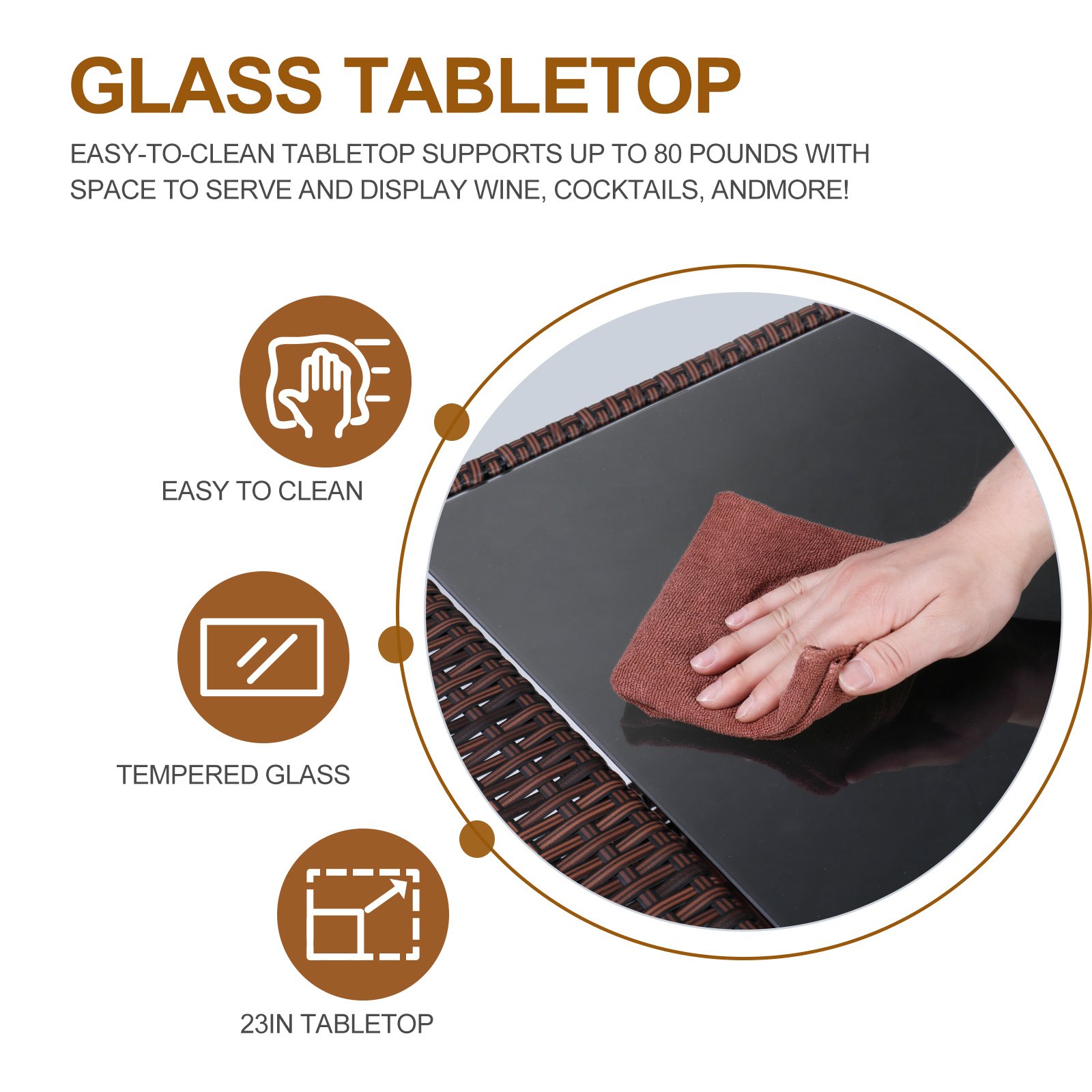 Introductions:This Outdoor Patio Wicker Rattan Serving Bar Cart with Ice Bucket Wine Rack Brown is a best choice for you. It's made of brown synthetic resin wicker and designed for the outdoors. It's of great bar cart to decorate your guard. The classic yet simple design made it look great in any setting. This bar cart is a beat useful furniture. It can be used to display appetizers and various beverage options. You will like it so what are you still waiting for?Features:1. Classic design decorate your home2. It can support 50kg3. Weather and UV resistant made it more durableSpecifications:1. Material: PE Cane Iron Tempered Glass2. Color: Brown Gradient Rattan Black Glass3. Overall Size: (40.06 x 18.5 x 36.61)" / (102 x 47 x 93)cm(L x W x H)4. Glass Size: (22.83 x 16.54 x 0.2)" / (58 x 42 x0.5)cm(L x W x H)5. Panel Size: (29.92 x 18.5 x 29.33)" / (76 x 47 x 74.5)cm(L x W x H)6. Middle Storage Frame: (29.92 x 18.5 x 3.94)" / (76 x 47 x 10)cm(L x W x H)7. Bottom Storage Frame: (29.92 x 18.5 x 7.87)" / (76 x 47 x 20)cm(L x W x H)8. Hollow Height: 33cm9. Load Bearing: 110.23lbs / 50kg10. Weight: 36.16lbs / 16.4kgPackage Includes:1 x Side Cabinet With Wheels1 x Glass1 x Hardware Assembly Parts1 x English Instruction Manual