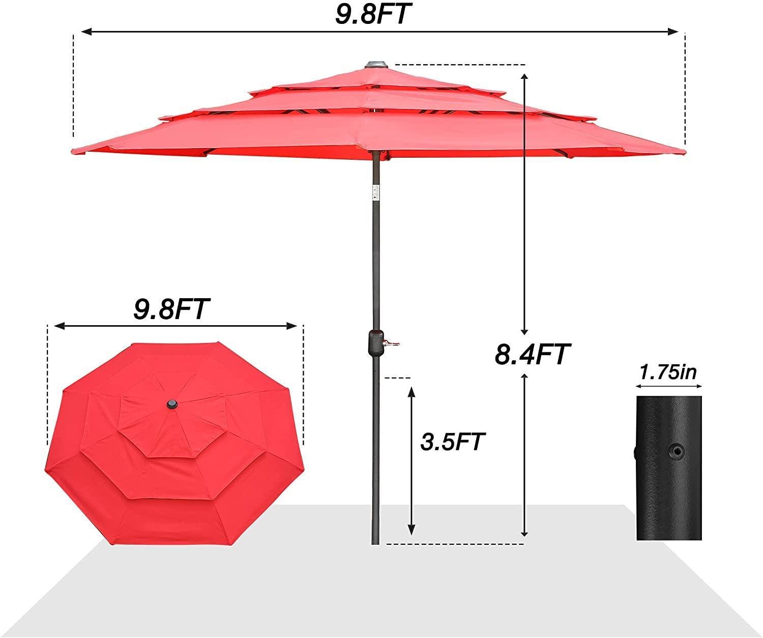 Dual Vented Design: 3 tier top adds fashion and elegance to your patio while providing better air circulation. Hot air or wind will flow through the dual vents quickly, which makes the umbrella more stable and cooler underneath on summer.