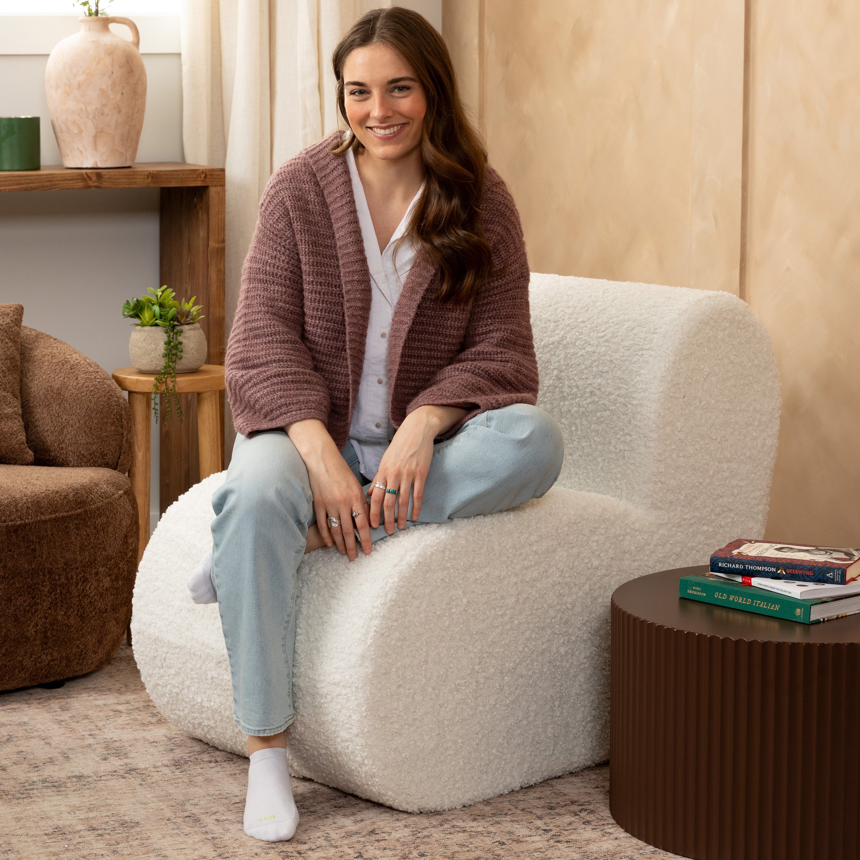 Introducing the chic, cozy Toccoa Chair, where modern design merges with unparalleled comfort. Crafted with sleek, curved lines that enhance any decor, its ergonomic shape contours to your body, providing sublime support. The removable, machine-washable cover and moisture-resistant inner liner allow for easy maintenance, while the high-density foam delivers optimum comfort. With its luxurious soft sherpa fabric, the Toccoa Chair envelops you in warmth and style — transforming any room into a haven of sophisticated relaxation.