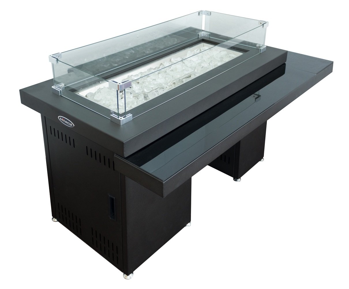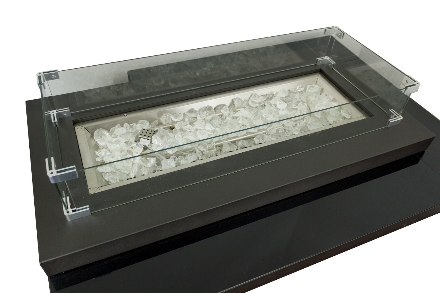 Enjoy your backyard a little more by adding this elegantly modern two-tiered propane fire pit in a beautiful black mocha finish. A battery-operated pulse ignition gives way to a propane heater that emits up to 50,000 BTUs of heat. Clear fire glass covers the burner and adds a touch of elegance. An easy access door located at the base allows you to easily conceal a 20 lb. propane tank (not included). For added safety, this fire pit comes with a thermocouple flame failure device as well as wind glass. This Propane Fire Pit from AZ Patio Heaters requires some assembly before it can be used and is CSA certified.