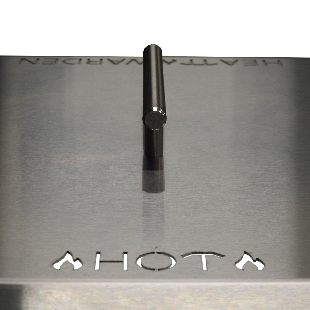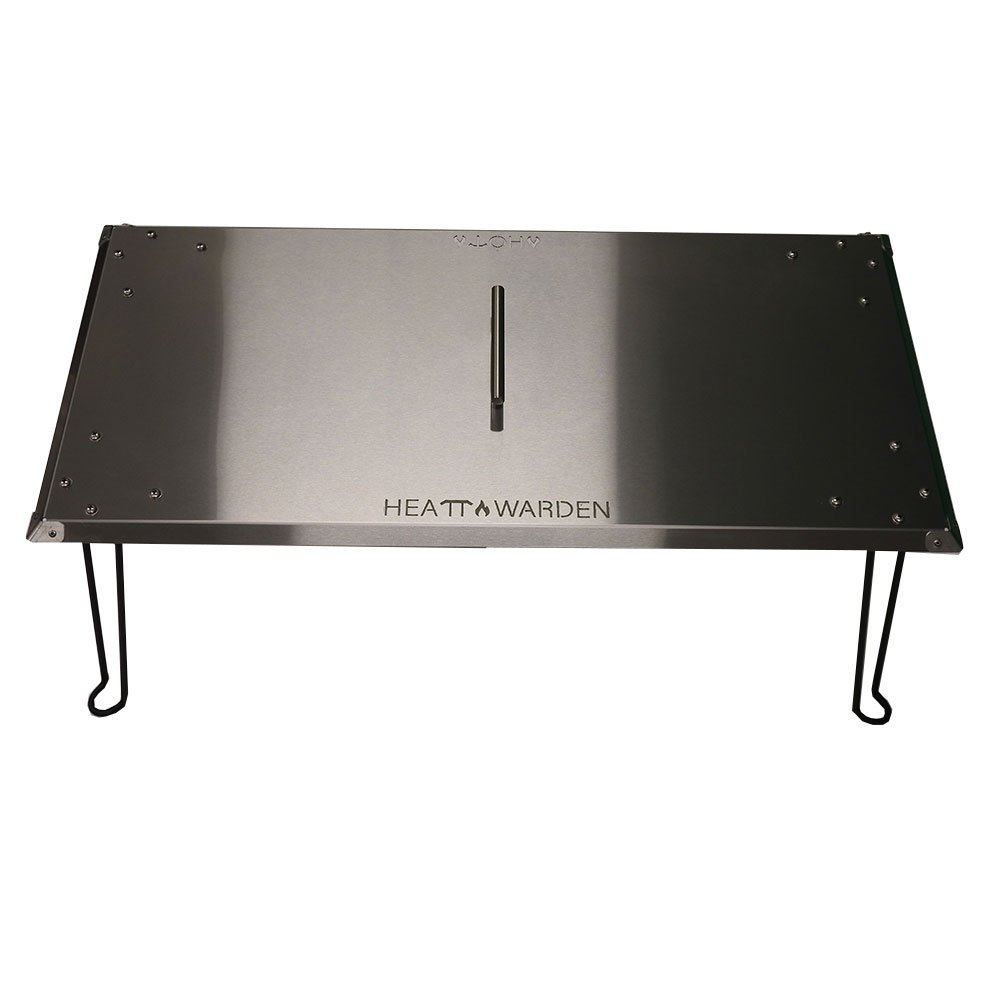 The Heat Warden all-stainless-steel heat deflector works wonders by deflecting the heat outward to your guest while keeping them warm. Whether hosting a party or just relaxing on the patio, the heat deflector will provide many warm, long lasting fires for you to enjoy for years to come. Durable steel legs fold underneath to allow this to convert as a burner cover when not in use. A stainless-steel pull handle makes it easy to grip and maneuver. This 32" x 16" rectangle heat deflector is patio safe and gives your fire pit a feature that is both functional and decorative. Make this fire pit season one to remember by adding this to your collection.
