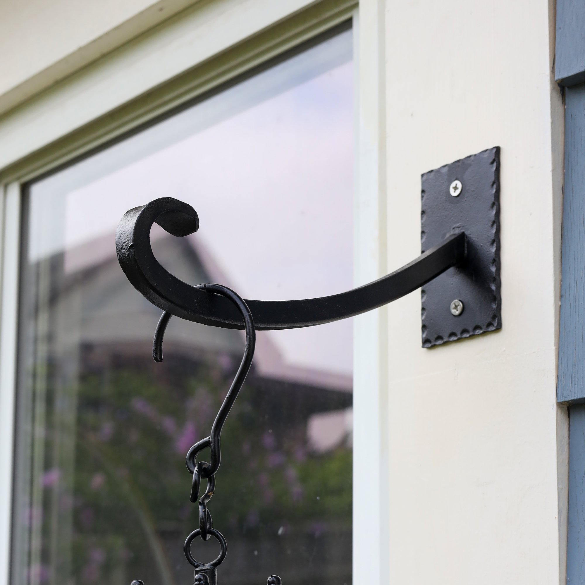 The Lodge Bracket series is a group of wrought iron wall brackets featuring biscuit-edge wall-mounting plates, hooks made from square bar stock and gently curving, smooth wide hooks. Stylish and sturdy, these handmade hooks have a style fitting any mission bungalow or craftsman home. With multiple hooks, ideal for hanging coats, hats and bags in the mudroom, horse bridles in the stable tack room, garden tools and gear, even fireplace tools. Use single hooks for planters, birdfeeders, lanterns and bells. Suitable for indoor and outdoor use, all brackets have a Black powder coated finish and are sold in pairs.
