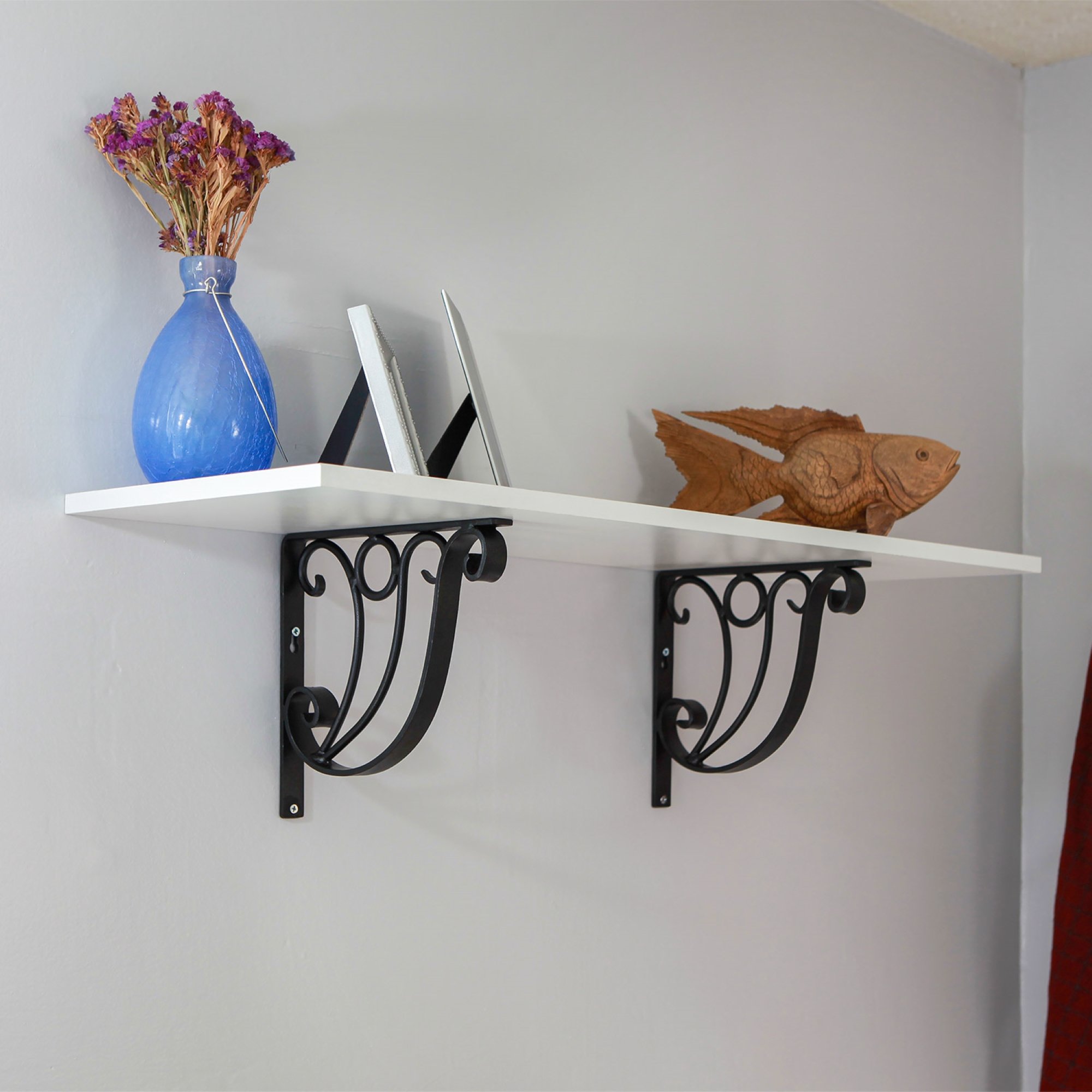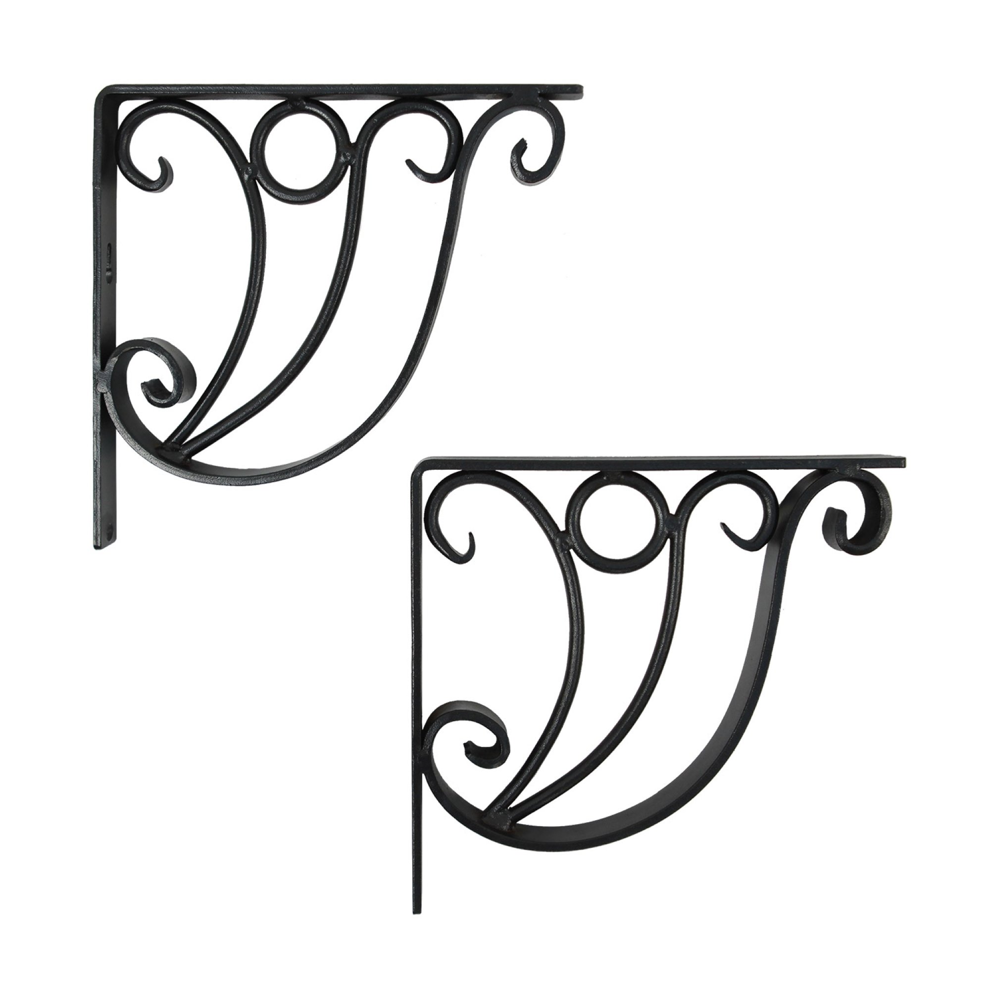 These sturdy wrought iron Ionic shelf brackets can support a 10'' deep shelf. The Art Deco design features an end curl that can be used as a hanging hook. Use to create library shelves, display a kitchen collection or create a fireplace mantel.