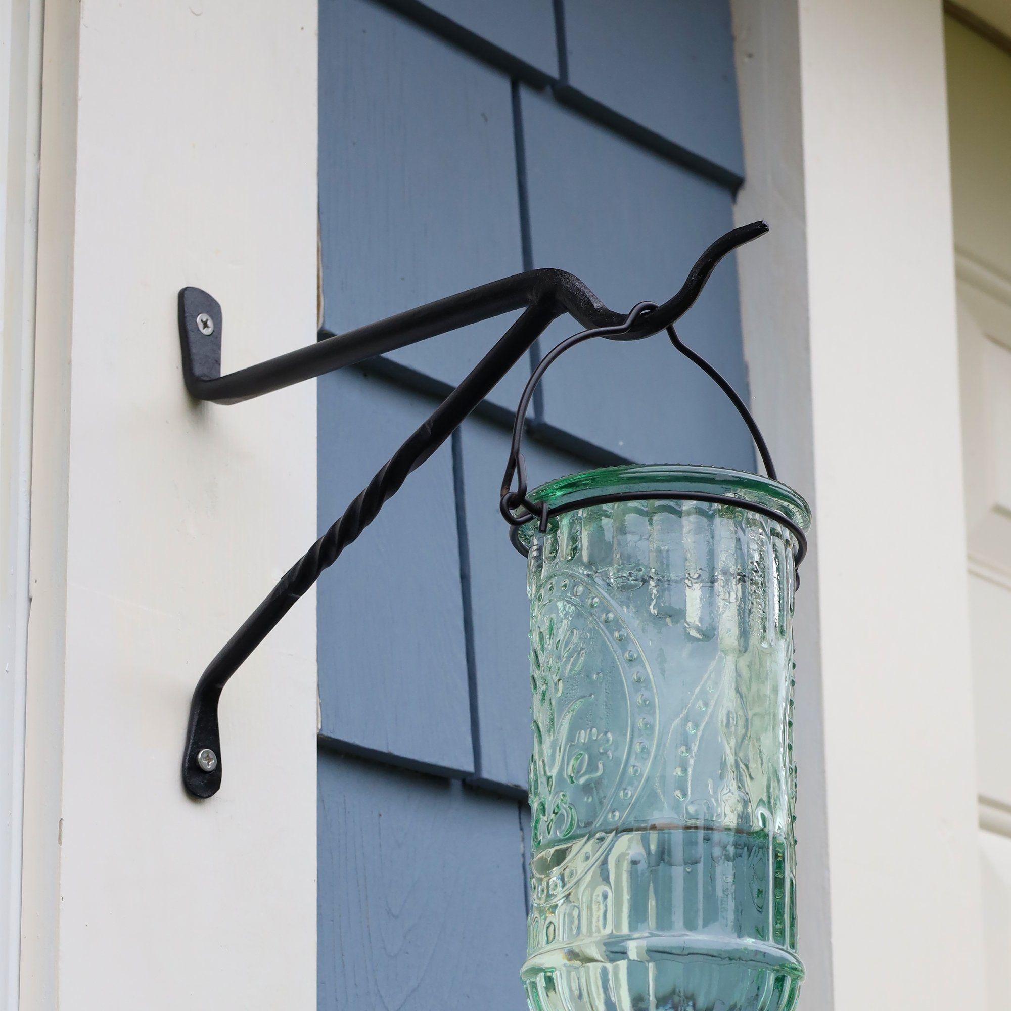 The arm of the Lantern Bracket stands straight out at 90 degrees from the wall and has a wide upturned hook to accommodate even a strap handle. Two legs provide increased stability and the lower piece has a gentle decorative twist. Achla Designs makes a wide variety of wrought iron hooks and brackets in all shapes and sizes for hanging your indoor and outdoor items. Employing traditional wrought iron techniques, we have brackets from large and decorative, to simple utilitarian j-hooks and extenders, in both square and round stock, single hooks, or multiple hook brackets. All our hooks and brackets are powder coated in Black or Graphite, to preserve the look of the natural wrought iron, while giving them maximum durability and weather resistance. Makers of fine quality goods for the home and garden since 1994, we offer a full line of Achla Designs wrought iron landscape structures, plant supports and stands, birdbaths and other decorative garden elements for the patio, porch, deck and yard.