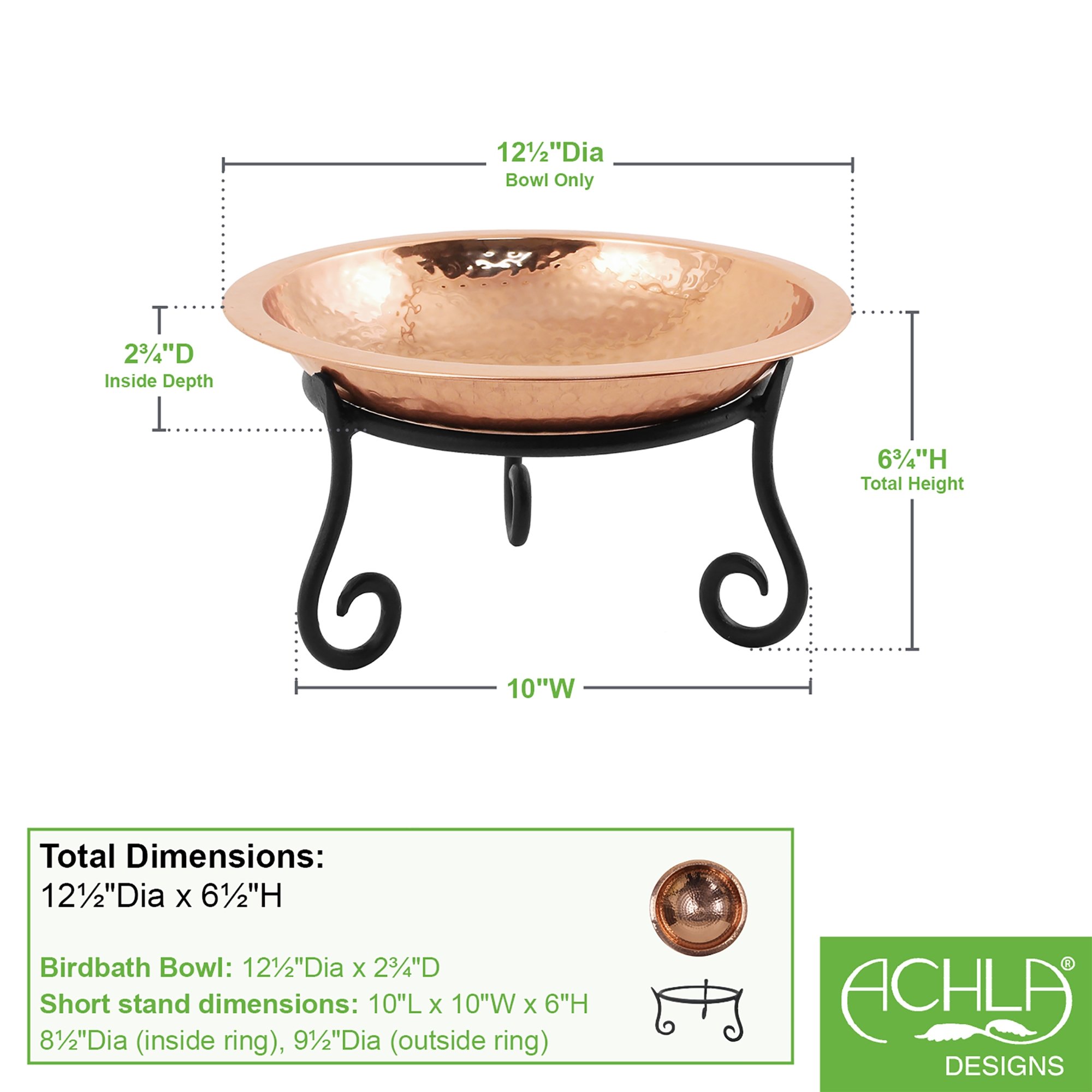 This simple Hammered Copper Bowl with a wrought iron Short Stand is striking as a low birdbath, or table centerpiece. Place it on a deck or table, a pedestal in the garden. The small three-footed wrought iron stand is perfect for rock gardens, low border plantings and tabletop decor. Fill it with floating flowers and candles for catering and garden parties.