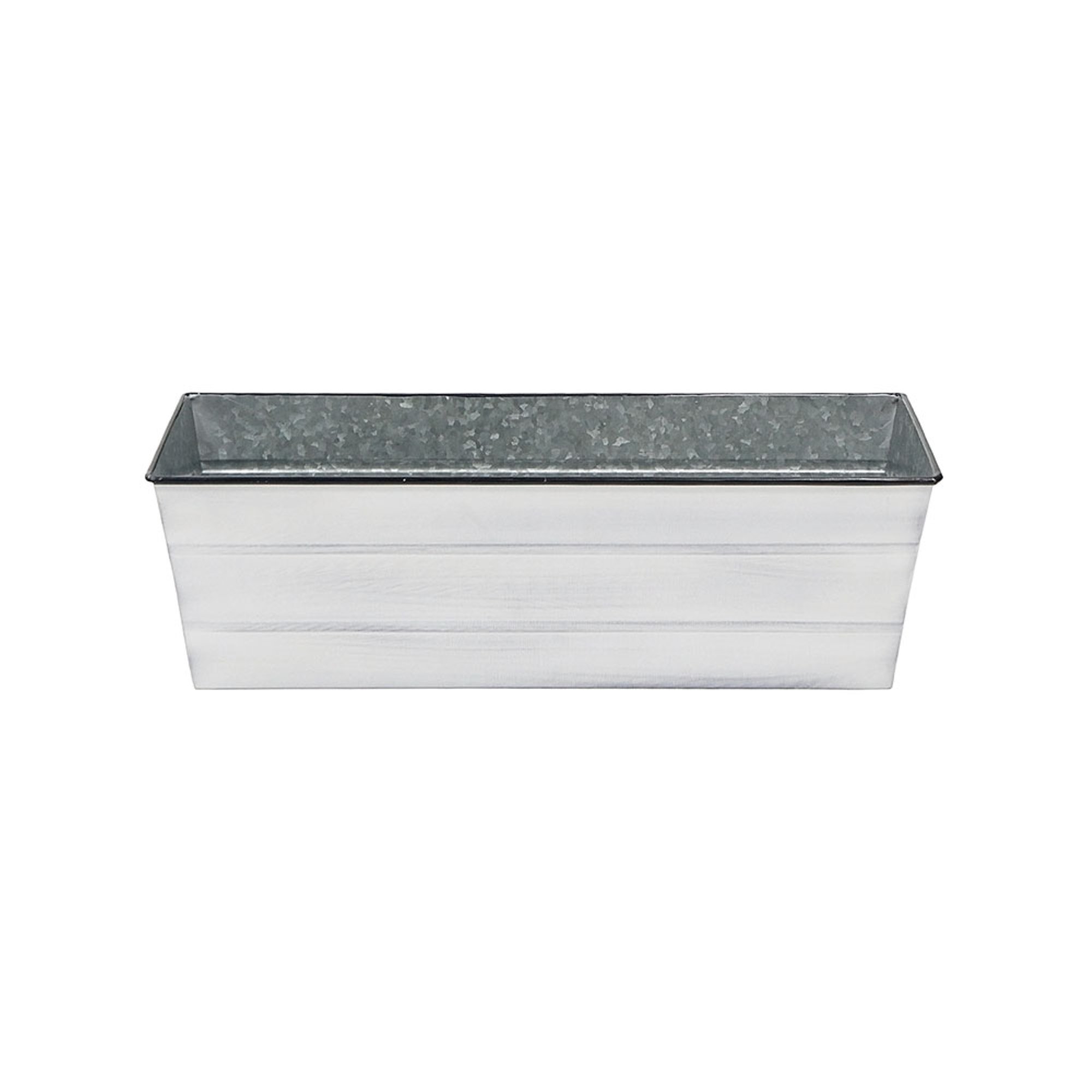 Available in three size options, these rectangular flower boxes have a rolled edge, embossed lines and a simple classic style. Made from Galvanized Steel, in three Patina finish colors, these planting containers will add curb appeal. Use them to create a lush container garden or urban balcony oasis. The Cape Cod White Flower Boxes are the classic seaside whitewash, to contrast with lush foliage and colorful blooms. All sizes and colors are also available in kits with Wall-Mount, Rail-Mount or Clamp-On Brackets.