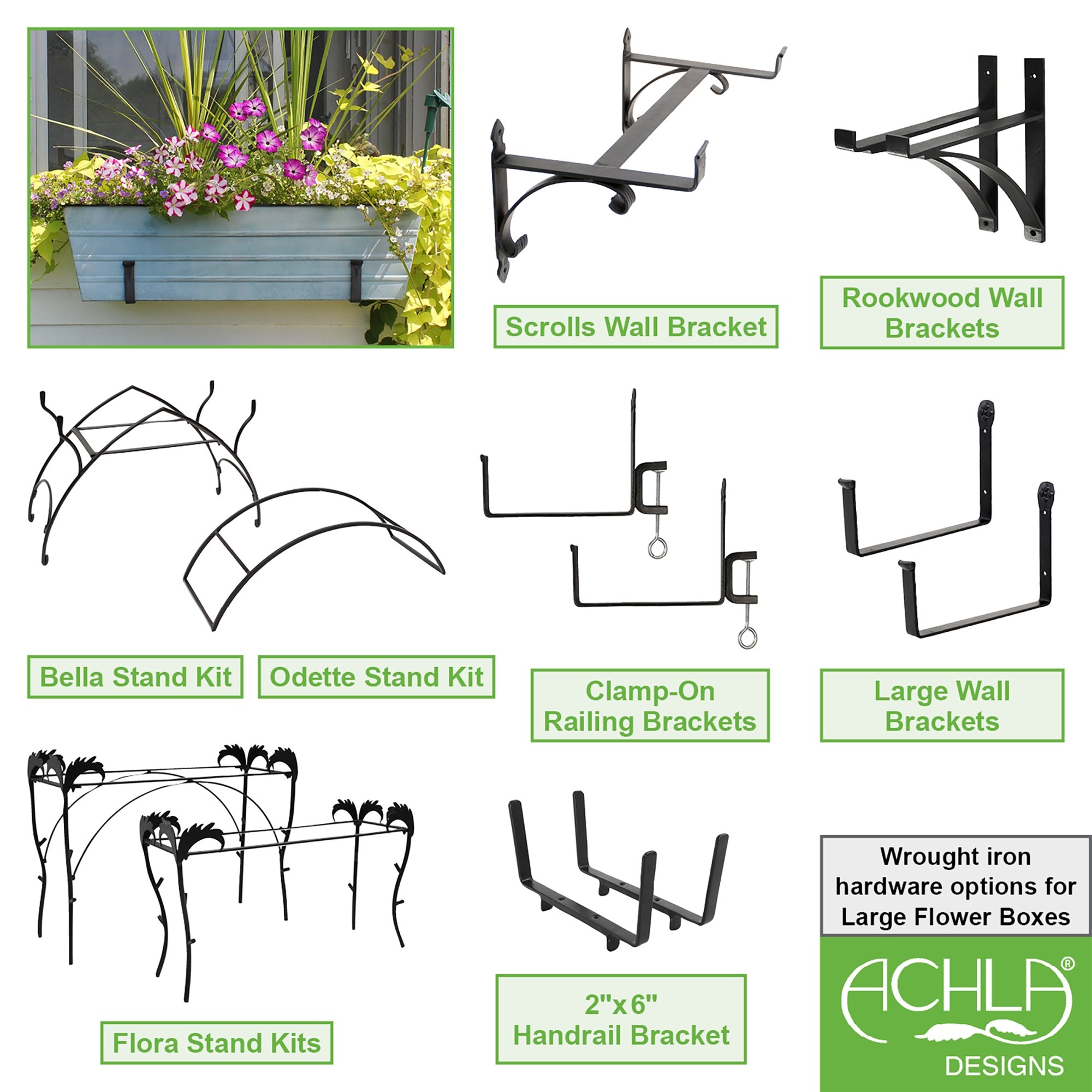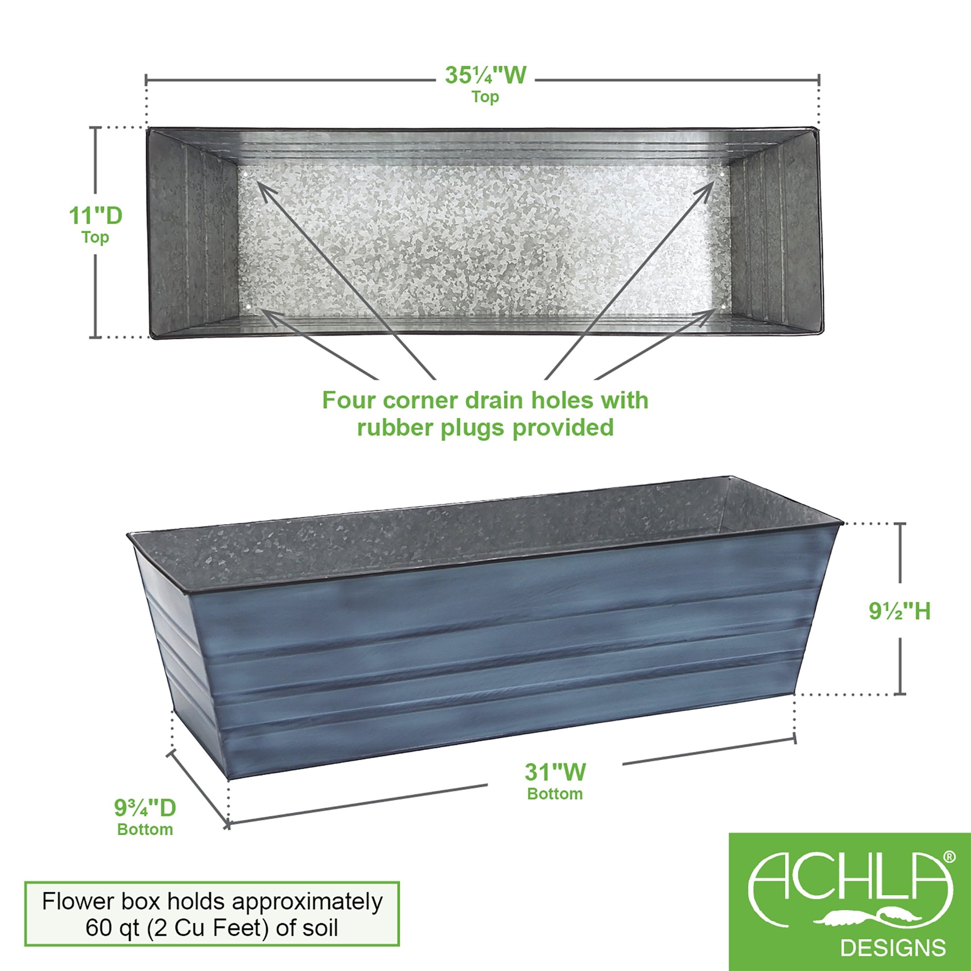 Available in three size options, these rectangular flower boxes have a rolled edge, embossed lines and a simple classic style. Made from Galvanized Steel, in three Patina finish colors, these planting containers will add curb appeal. Use them to create a lush container garden or urban balcony oasis. The Nantucket Blue Flower Boxes contrast gently with lush foliage and offset colorful blooms. All sizes and colors are also available in kits with Wall-Mount, Rail-Mount or Clamp-On Brackets.