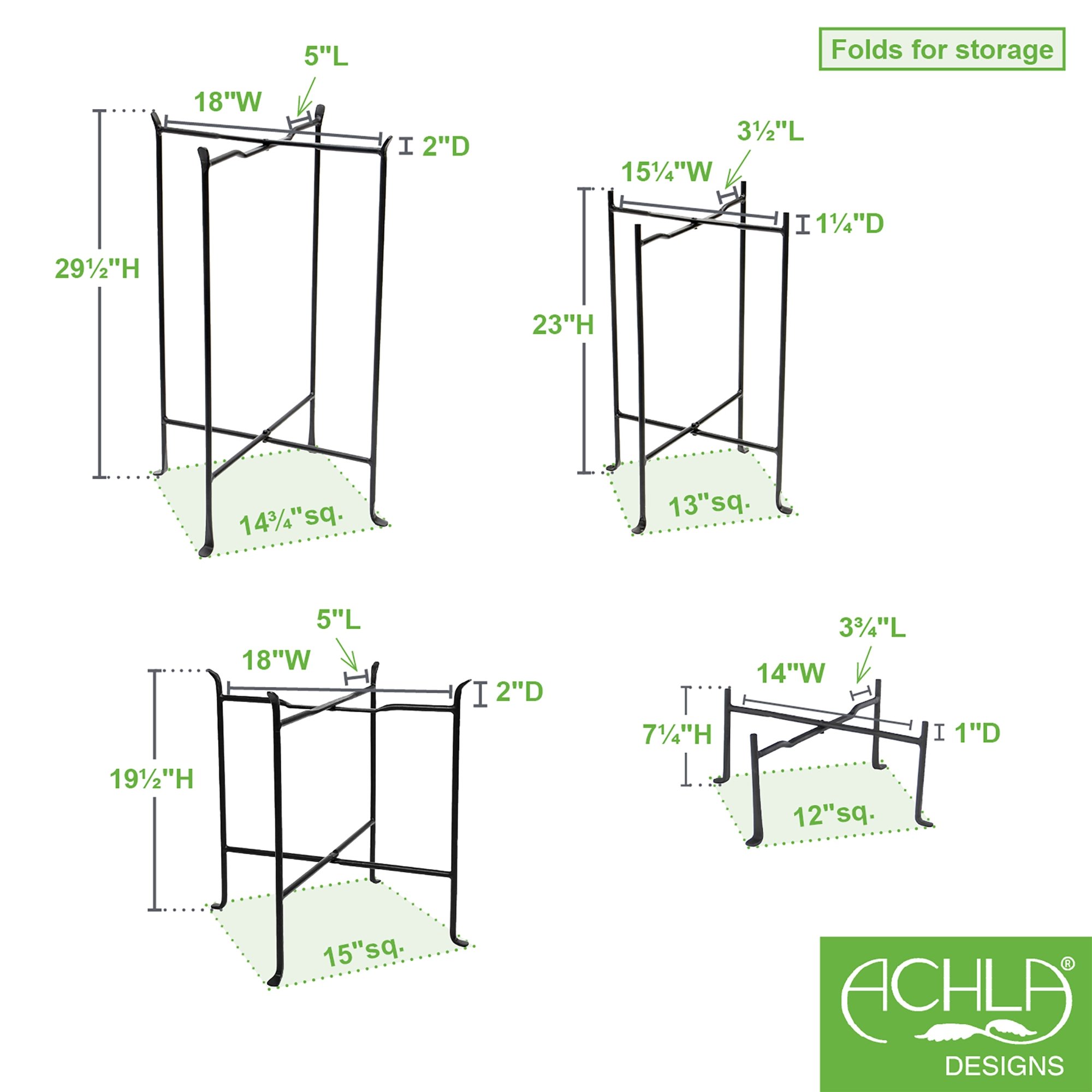 These handy Folding Stands, in four sizes, have a multitude of uses, for parties and catering, retail display, and seasonal gardening use, because they hold a variety of containers and then store away easily. Sturdy wrought iron construction with cross-pieces that open to capture flower pots, window box planters, tubs, and trays of all sizes. The Large Floor Stand is ideal for chilling beverages tableside, giving flowerboxes and trays a lift on decks and balconies, or lifting indoor plants to a window. In tall and short options for tabletop, patio and windowsill height, these Folding Stands are highly versatile, indoors and out.
