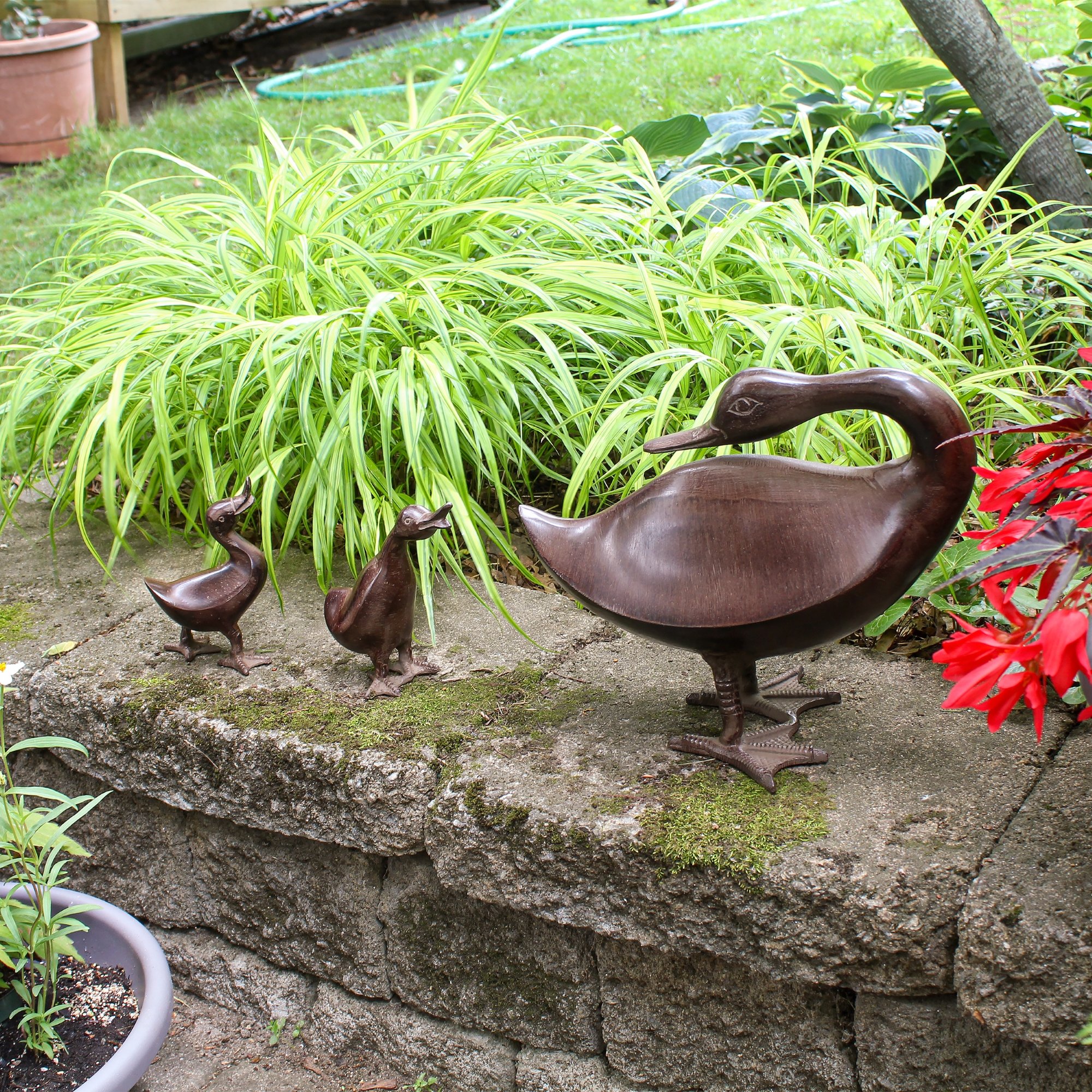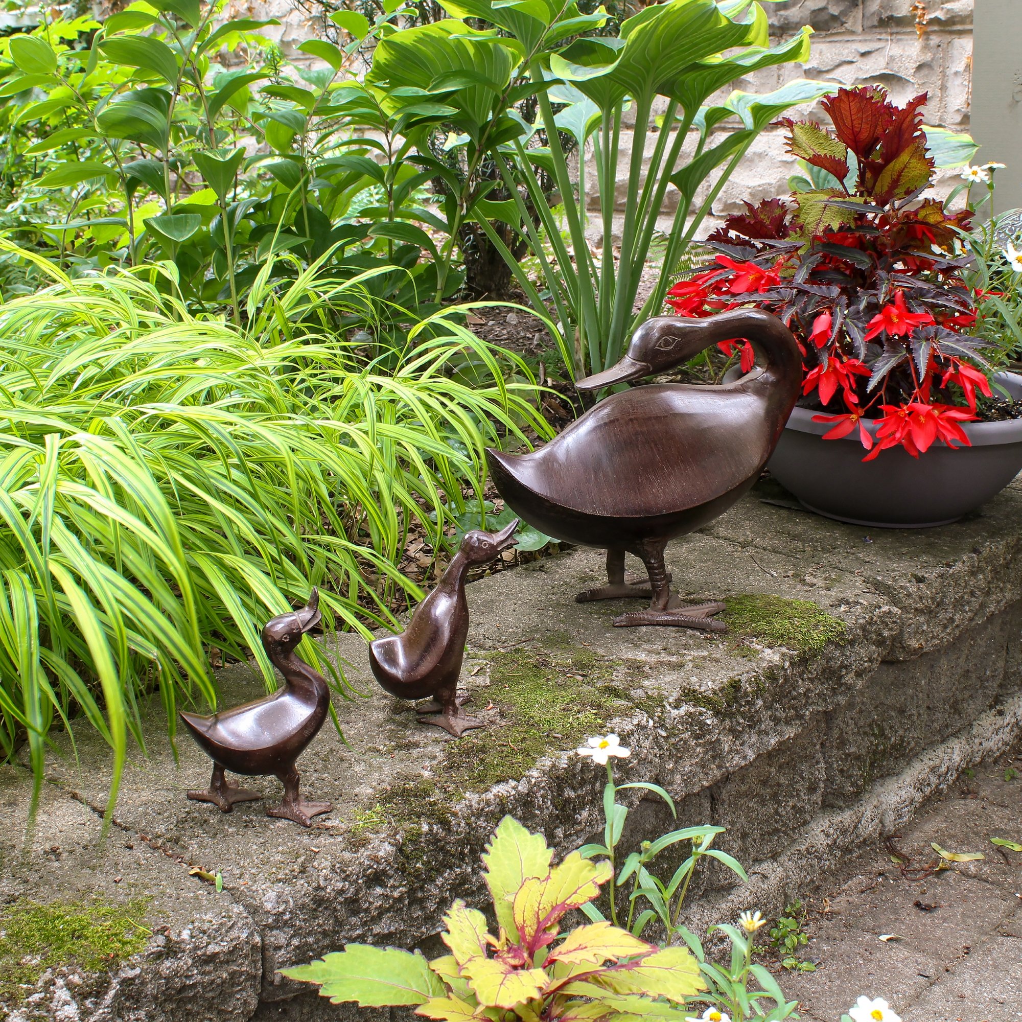 Create a garden vignette or add the entire Duck family to a water feature. With its extended neck, and upward curved beak, the Hello Duck will lend a friendly welcome to garden visitors. With a backward glance, the Goodbye Duck seems to say "Come back soon!" Complete the family with the addition of the sweet little Duckling Pair.