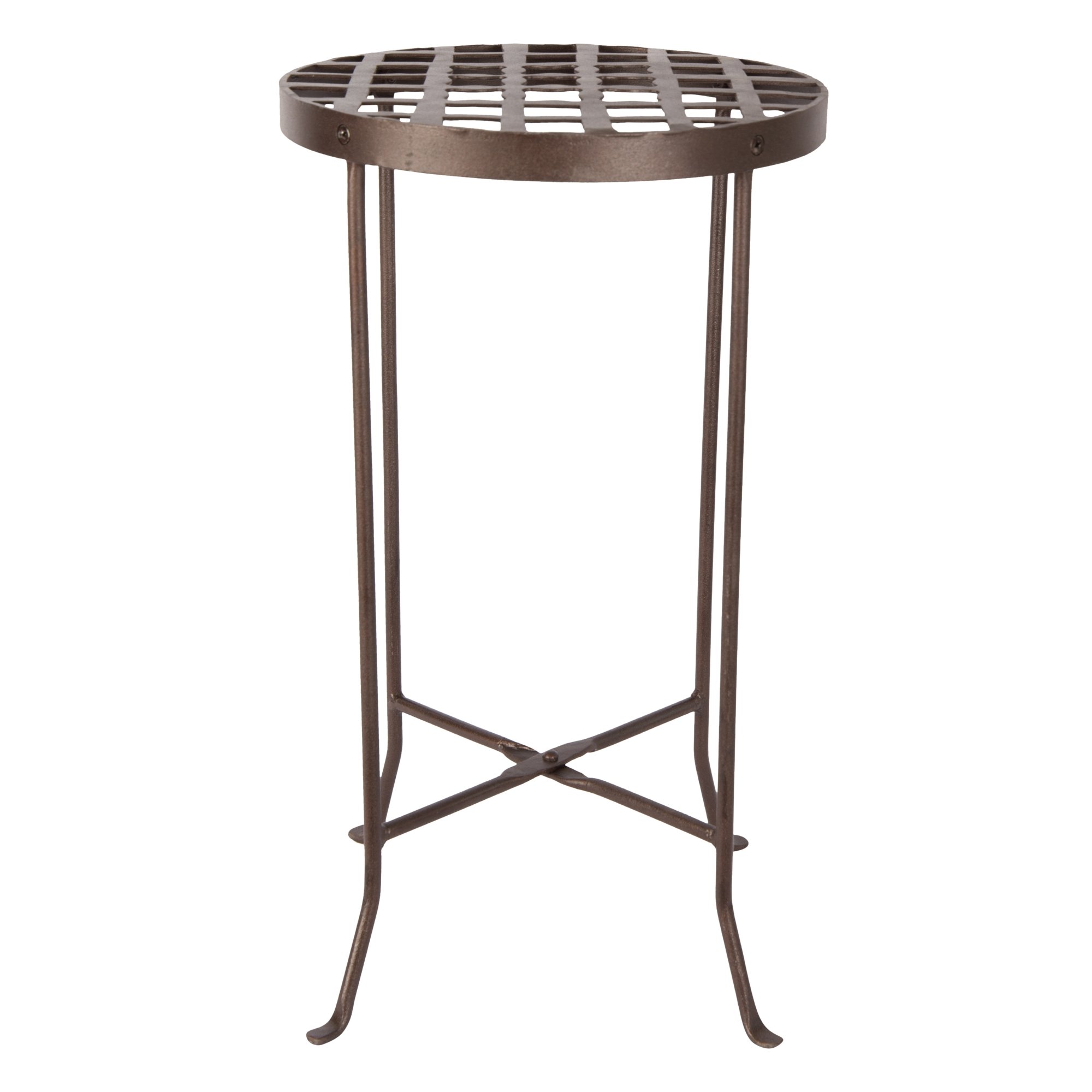 The Achla Designs Flowers wrought-iron Plant Stands make an excellent addition to any home, patio, balcony, porch, terrace, or garden. With straight legs and gently curving feet, these stands are gracefully proportioned with a sturdy construction that can support a variety of potted plants and planters. The top of the stand is circular, with flat decorative cross bars on which you can place a flowerpot or a planter. These stands are available in three different sizes, making it easy for you to find one that fits your particular need, or create a tiered grouping. Forged from wrought iron with a high-quality Roman bronze powder coated finish. The sleek bronze finish is attractive in both indoor and outdoor settings, even as a small accent table. Makers of fine quality goods for the home and garden since 1994, we offer a full line of Achla Designs wrought iron landscape structures, plant supports and stands, birdbaths and other decorative garden elements.
