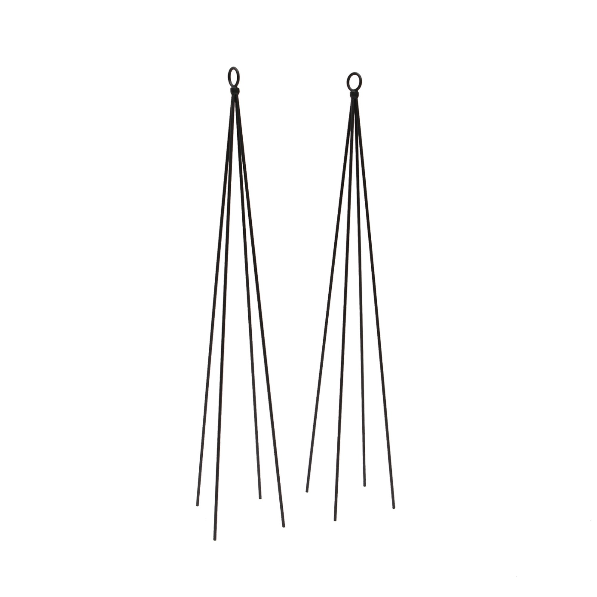 For any avid gardener or plant lover, finding a simple, yet attractive support for your climbing vines, flowers, vegetables, or runners can be a challenge. The most simple of trellis designs, these four-legged stakes with loop finial are a simple solution. Use them to support any type of short climbing or bushy plant, container cucumber, mandevilla, thunbergia or clematis. The legs can be pulled apart to achieve desired footprint size and shape for the planter. Compress the legs and the slim profile takes almost no space to store away at season's end.
