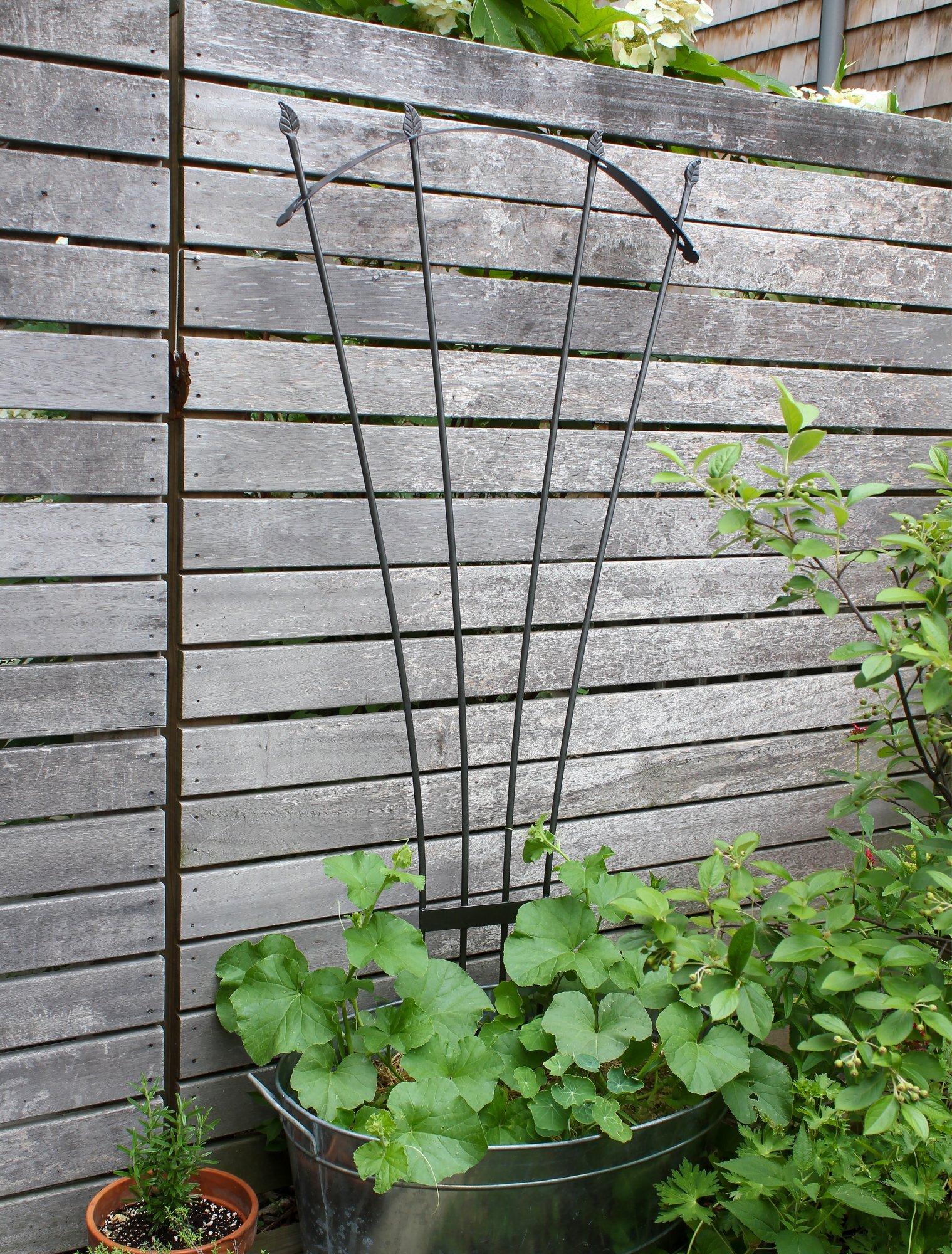 For any avid gardener or plant lover, finding attractive support for your climbing vines, flowers, vegetables, or runners can be a challenge. Many people turn to traditional trellises or arbors to support their climbing plants and vines. With a Fan Trellis by ACHLA Designs, you get not only the functionality of a sturdy trellis that is more durable and long-lasting than conventional wood. The Fan Trellis is a simple and elegant support for climbers. The narrow base has spiked feet that can be pushed directly into garden beds or even containers. The four ribs of the fan are held apart by an arching cross-piece that slips over the ends. This is an ideal style trellis for climbing roses, clematis or mandevilla.