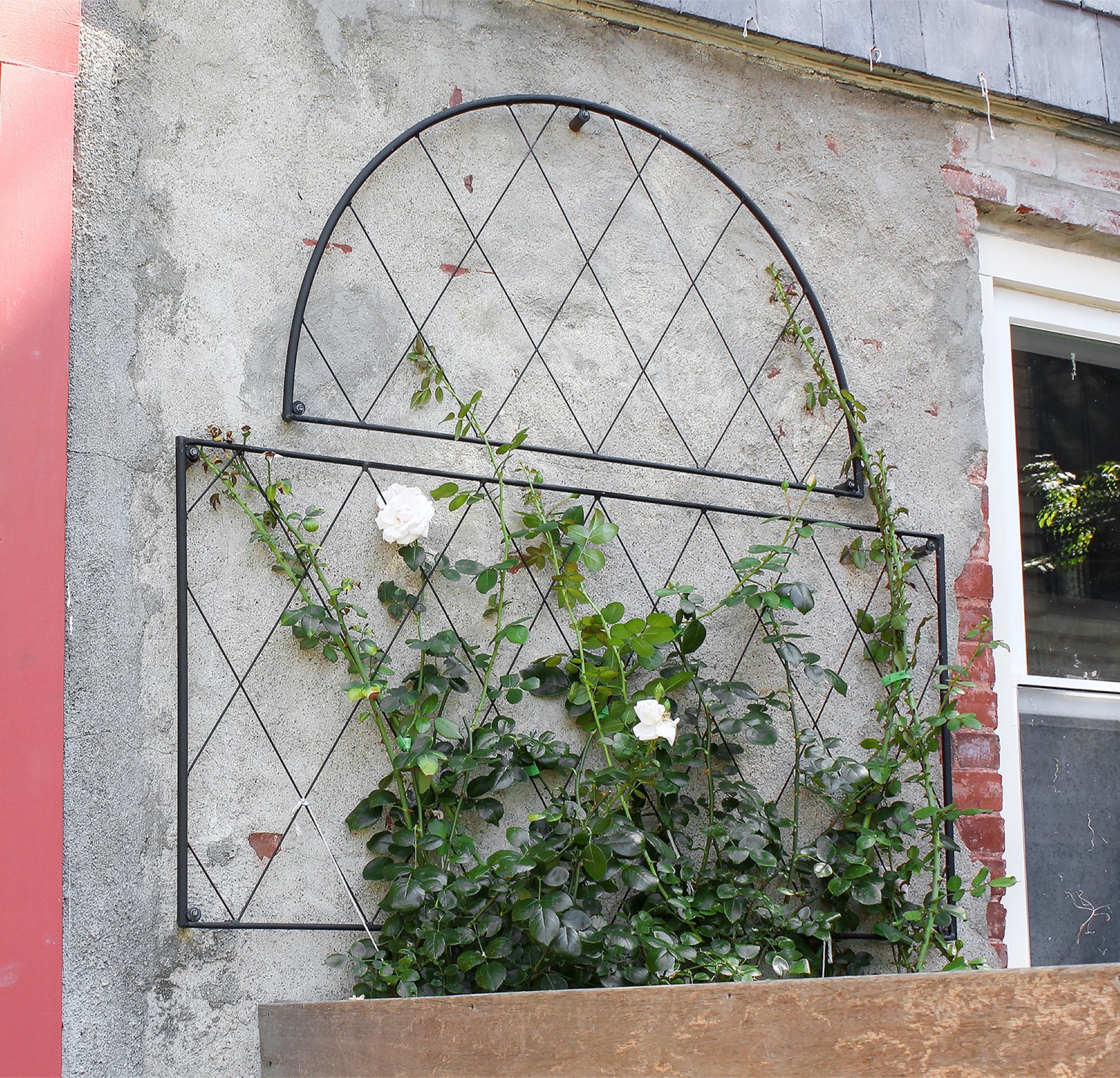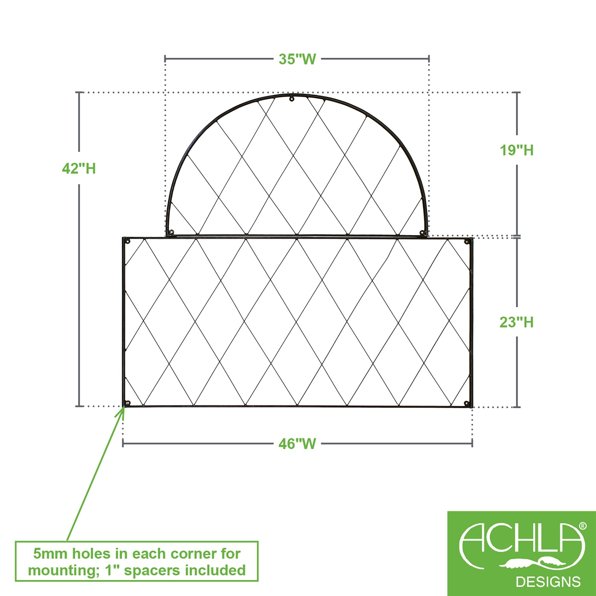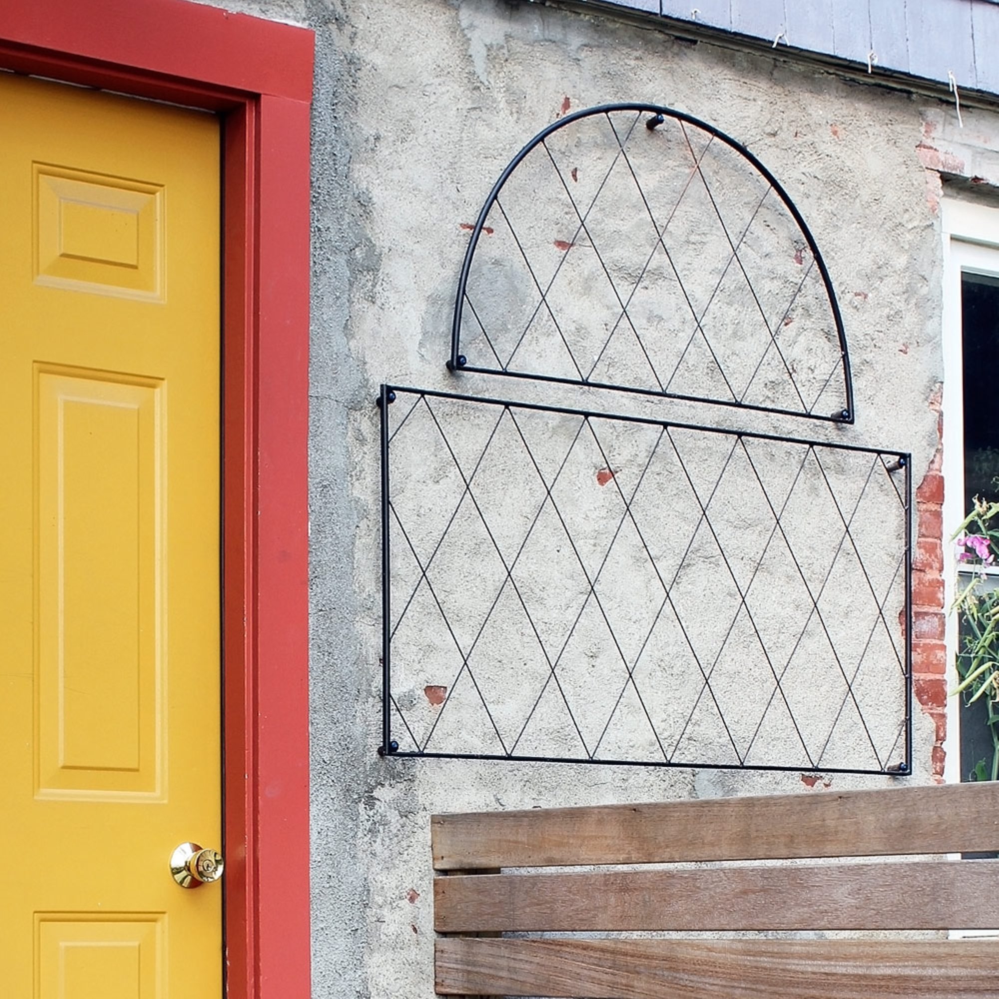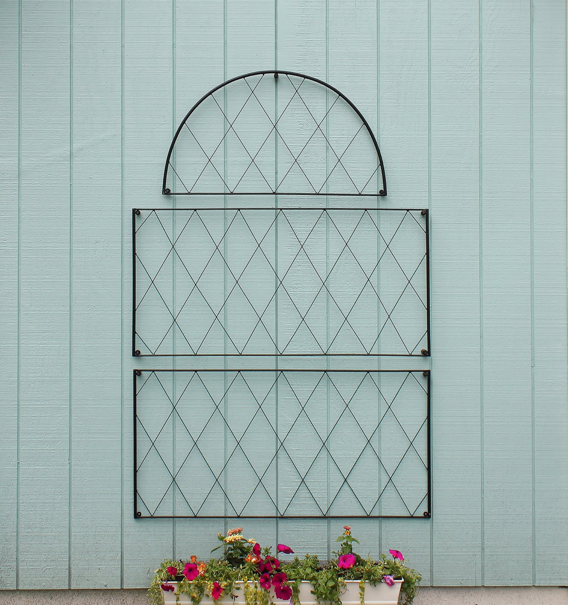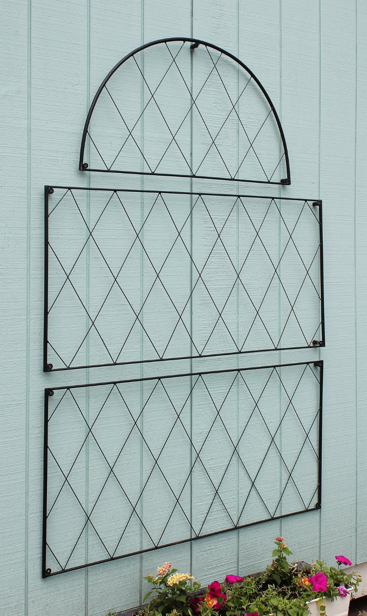 For any avid gardener or plant lover, finding enough vertical space for your climbing vines, flowers, vegetables, or runners can be a challenge. Trellising is a vital gardening tool, and beautiful trellises make attractive accent pieces or focal points. The Oxford shire Trellis is a modular wall-mounted trellis, perfect for creating the classic English cottage garden look- masses of tea roses, clematis, or climbing hydrangea. The two-part trellis can be elongated by adding the additional rectangular Oxfordshire Trellis Extension, or pairs placed side by side along a wall to create a lush wall of blooms. Mounting holes and spacers are provided for each piece.