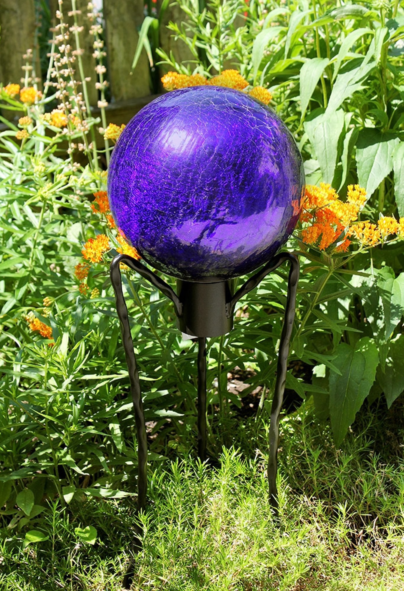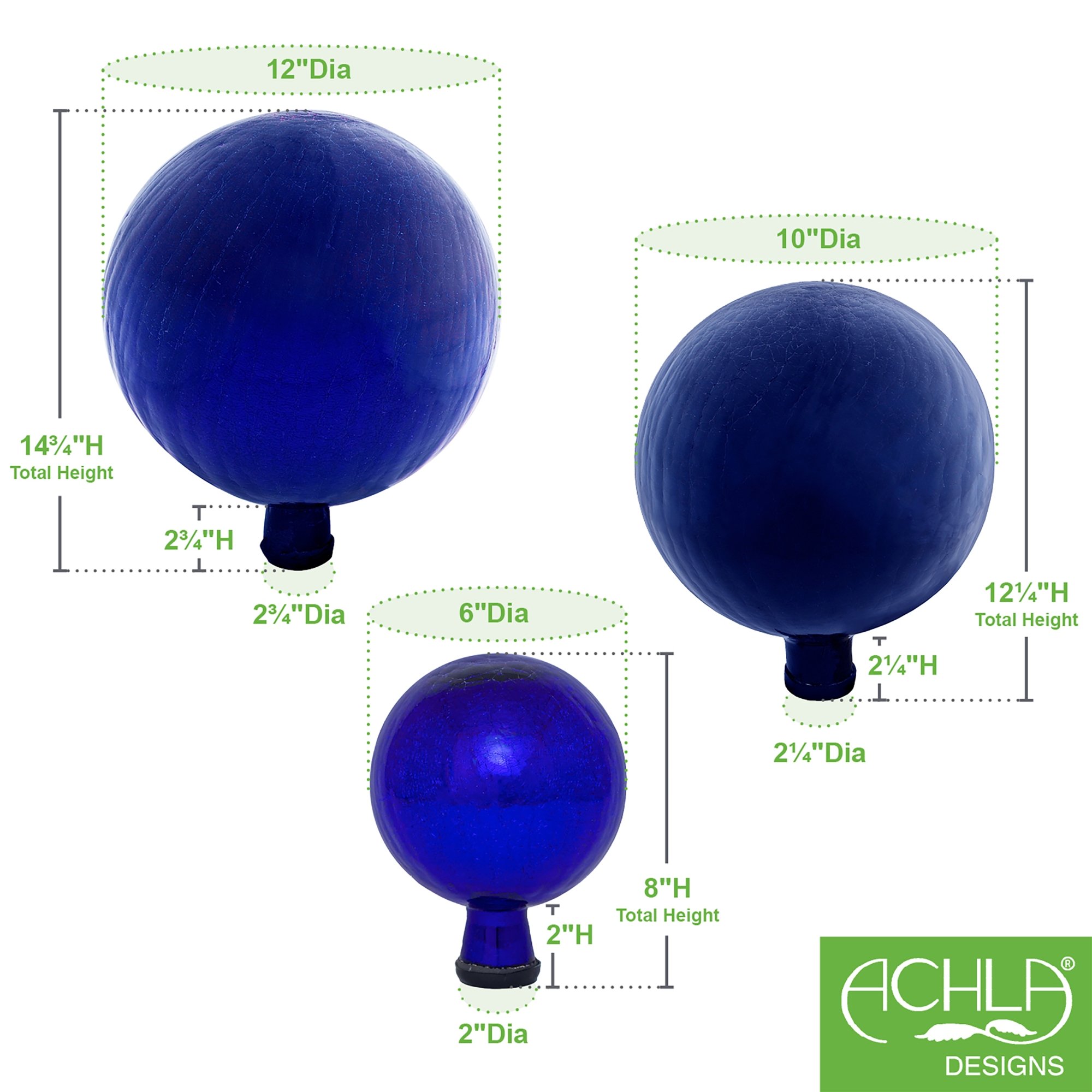 Named “spheres of light” by Antonio Neri in 1612, the first gazing globes date back to 13th century Venice. Popularized in the Victorian era, the mirrored finish provided a fish-eye view of the entire garden and they were believed to fend off misfortune and deliver happiness and joy. Add color, charm, and good luck to your garden with these sparkling garden jewels from ACHLA Designs. These glass balls are blown in a layered technique that gives a crackly appearance over the colored glass and mirror finish while retaining structural integrity. In 11 brilliant colors that will not fade with the sun, and three diameter sizes, 6” 10” and 12”. All Crackle Glass Gazing Globes have a stem that allows them to sit securely in any of our gazing globe stands. Our wrought iron Gazing Globe Stands come in a wide array of sizes and styles for hard surfaces and spiking directly into lawn and garden beds.