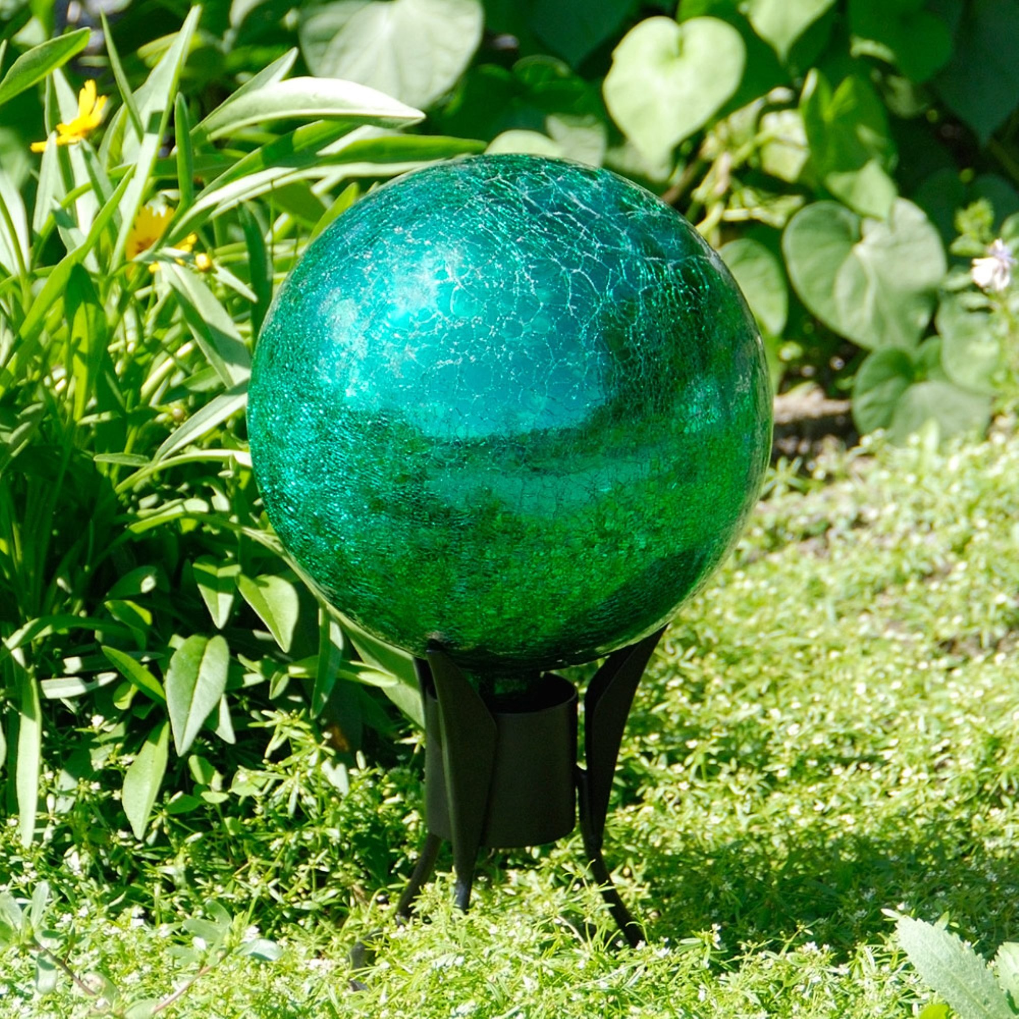 Named “spheres of light” by Antonio Neri in 1612, the first gazing globes date back to 13th century Venice. Popularized in the Victorian era, the mirrored finish provided a fish-eye view of the entire garden and they were believed to fend off misfortune and deliver happiness and joy. Add color, charm, and good luck to your garden with these sparkling garden jewels from ACHLA Designs. These glass balls are blown in a layered technique that gives a crackly appearance over the colored glass and mirror finish while retaining structural integrity. In 11 brilliant colors that will not fade with the sun, and three diameter sizes, 6” 10” and 12”. All Crackle Glass Gazing Globes have a stem that allows them to sit securely in any of our gazing globe stands. Our wrought iron Gazing Globe Stands come in a wide array of sizes and styles for hard surfaces and spiking directly into lawn and garden beds.