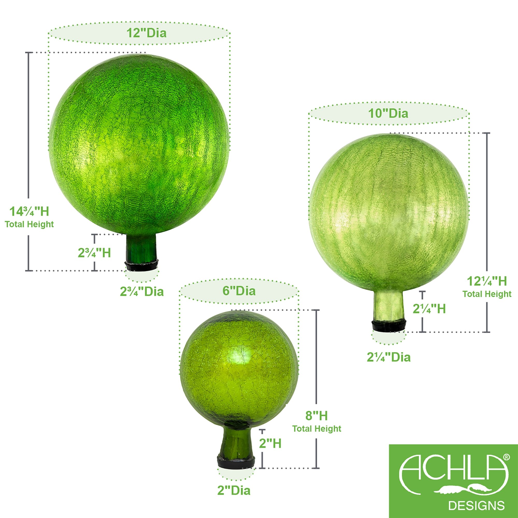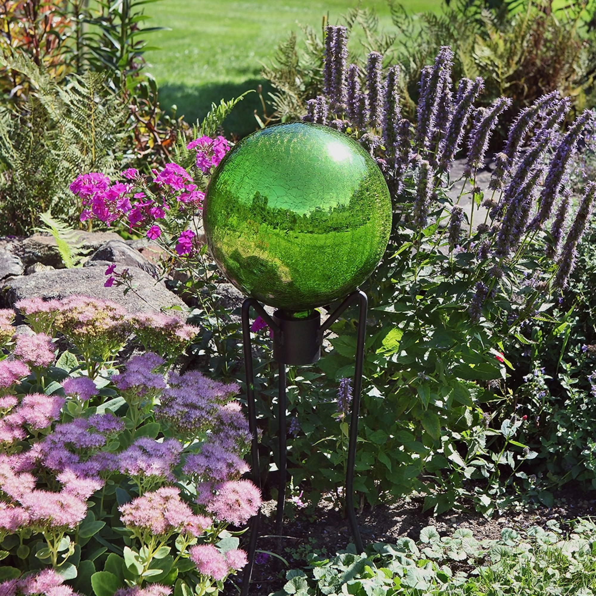 Named “spheres of light” by Antonio Neri in 1612, the first gazing globes date back to 13th century Venice. Popularized in the Victorian era, the mirrored finish provided a fish-eye view of the entire garden and they were believed to fend off misfortune and deliver happiness and joy. Add color, charm, and good luck to your garden with these sparkling garden jewels from ACHLA Designs. These glass balls are blown in a layered technique that gives a crackly appearance over the colored glass and mirror finish while retaining structural integrity. In 11 brilliant colors that will not fade with the sun, and three diameter sizes, 6” 10” and 12”. All Crackle Glass Gazing Globes have a stem that allows them to sit securely in any of our gazing globe stands. Our wrought iron Gazing Globe Stands come in a wide array of sizes and styles for hard surfaces and spiking directly into lawn and garden beds.