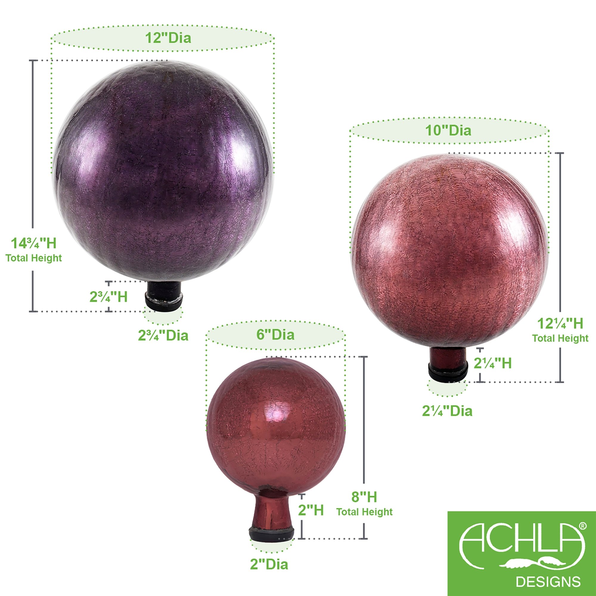 Named “spheres of light” by Antonio Neri in 1612, the first gazing globes date back to 13th century Venice. Popularized in the Victorian era, the mirrored finish provided a fish-eye view of the entire garden and they were believed to fend off misfortune and deliver happiness and joy. Add color, charm, and good luck to your garden with these sparkling garden jewels from ACHLA Designs. These glass balls are blown in a layered technique that gives a crackly appearance over the colored glass and mirror finish while retaining structural integrity. In 11 brilliant colors that will not fade with the sun, and three diameter sizes, 6” 10” and 12”. All Crackle Glass Gazing Globes have a stem that allows them to sit securely in any of our gazing globe stands. Our wrought iron Gazing Globe Stands come in a wide array of sizes and styles for hard surfaces and spiking directly into lawn and garden beds.