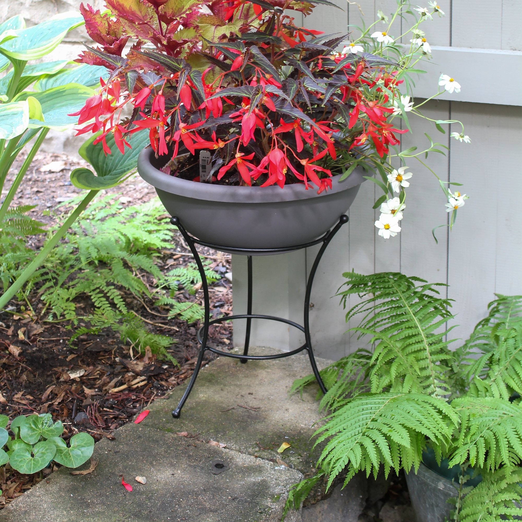 Ideally designed to hold your favorite planters or birdbath, the Short Stand can also be used to hold any round container, bowl or ornament. For Indoor and outdoor use, these simple, sturdy wrought iron plant holders keep potted plants off the floor or ground. Outdoors, use them to lift planters for a container garden. This stand has a multitude of uses- great for holding for a tabletop succulent or fairy garden, floating floral centerpiece, beverage dispenser or appetizer stand for a garden party. All Achla Designs decorative plant stands are handmade using fine wrought iron with traditional style and techniques. This plant stand has a Black finish that is powder coated, giving a clean matte black finish and offering a weather resistance that is superior to that of paint. See our full line of Achla Designs plant stands for every patio, porch, terrace, deck or balcony container garden, to fit every style of home and garden décor.