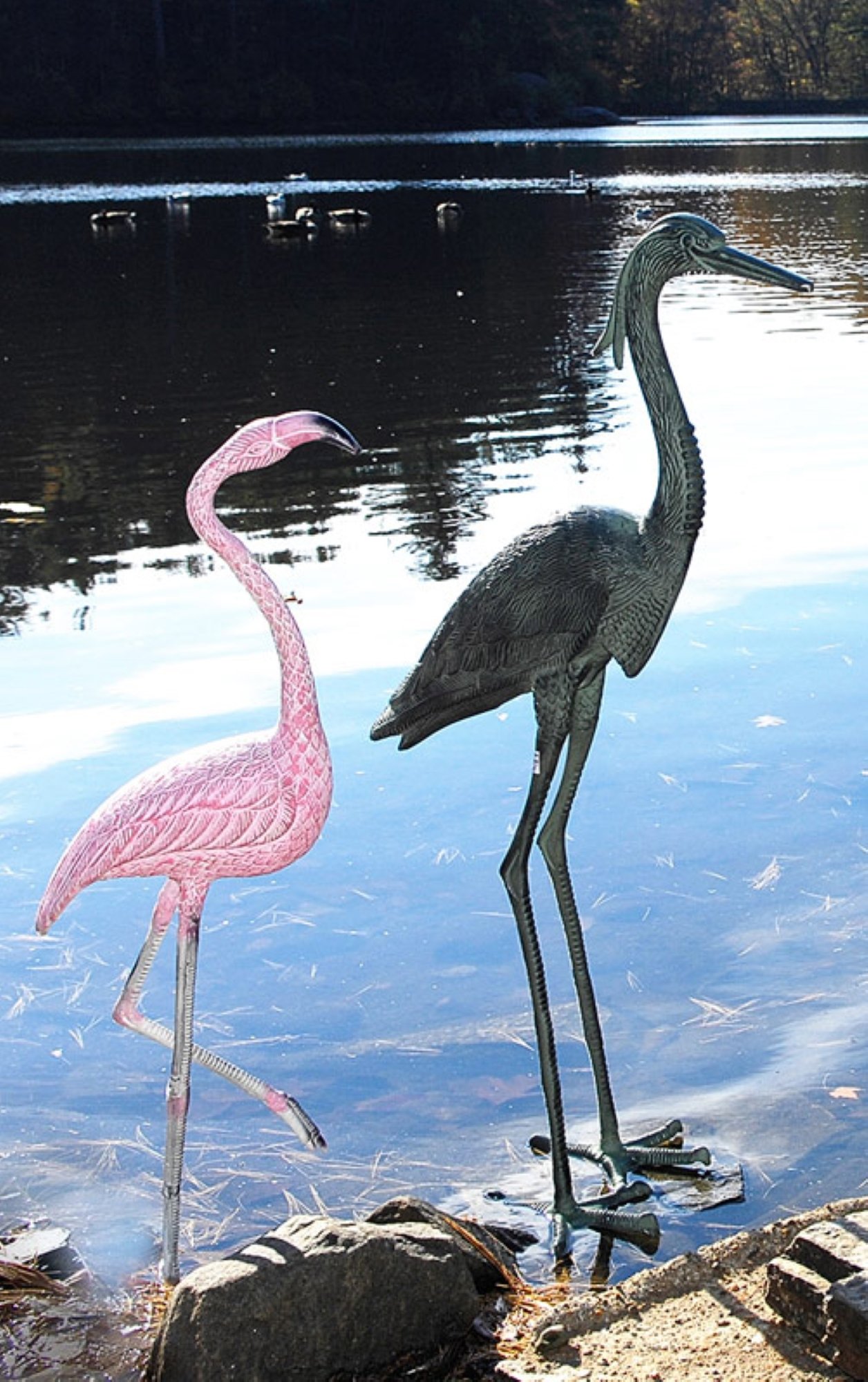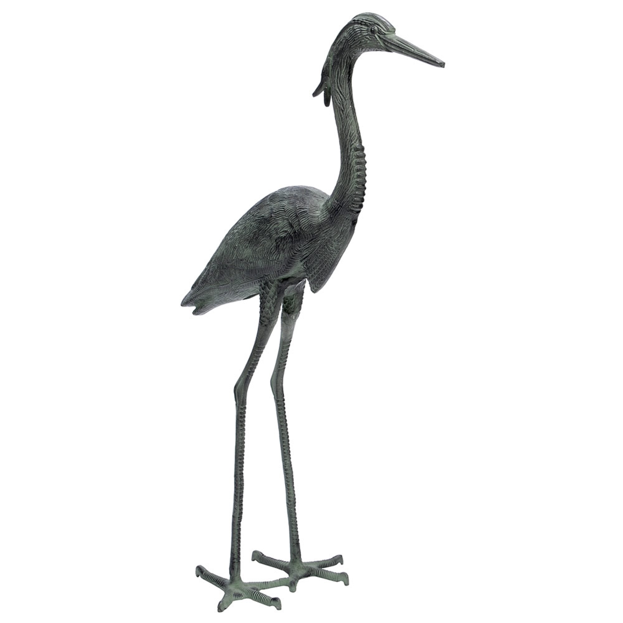 The Great Blue Heron is North America's largest bird, and this stately creature is the first water bird that first comes to mind, with its long legs and giant wingspan. Its ability to long stand still and patient in wait of its prey makes it an ideal artist's subject. Slightly smaller than life-size, the Great Blue Heron is a striking accent to the landscape. The Stately Blue Heron and Great Blue Heron statues are a great addition to any backyard habitat, garden or water feature. Masterfully crafted for a realistic appearance, with textured feathers etched in the body, the long legs, and splayed feet of a true wading bird. Blue Heron statues make excellent gifts for bird lovers.