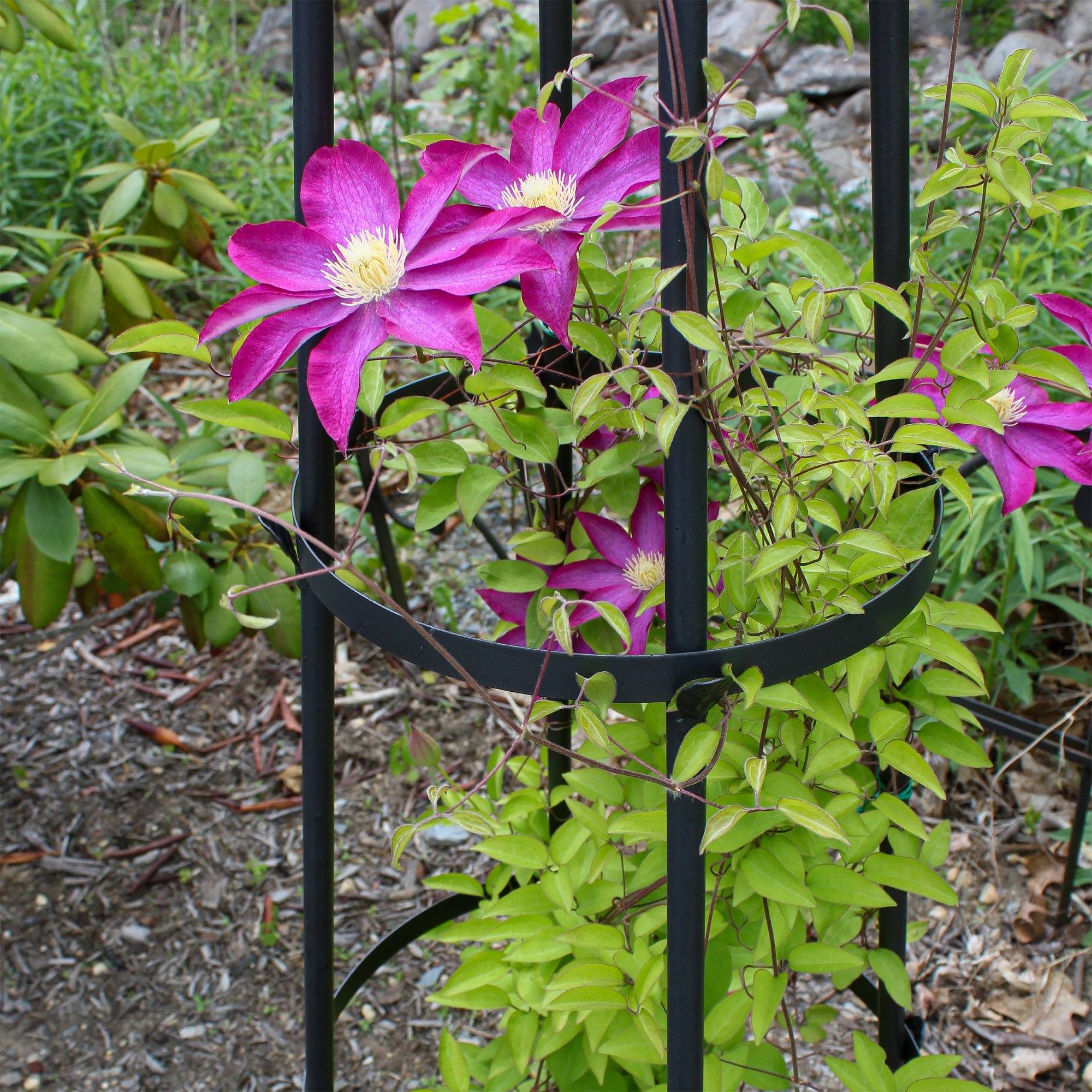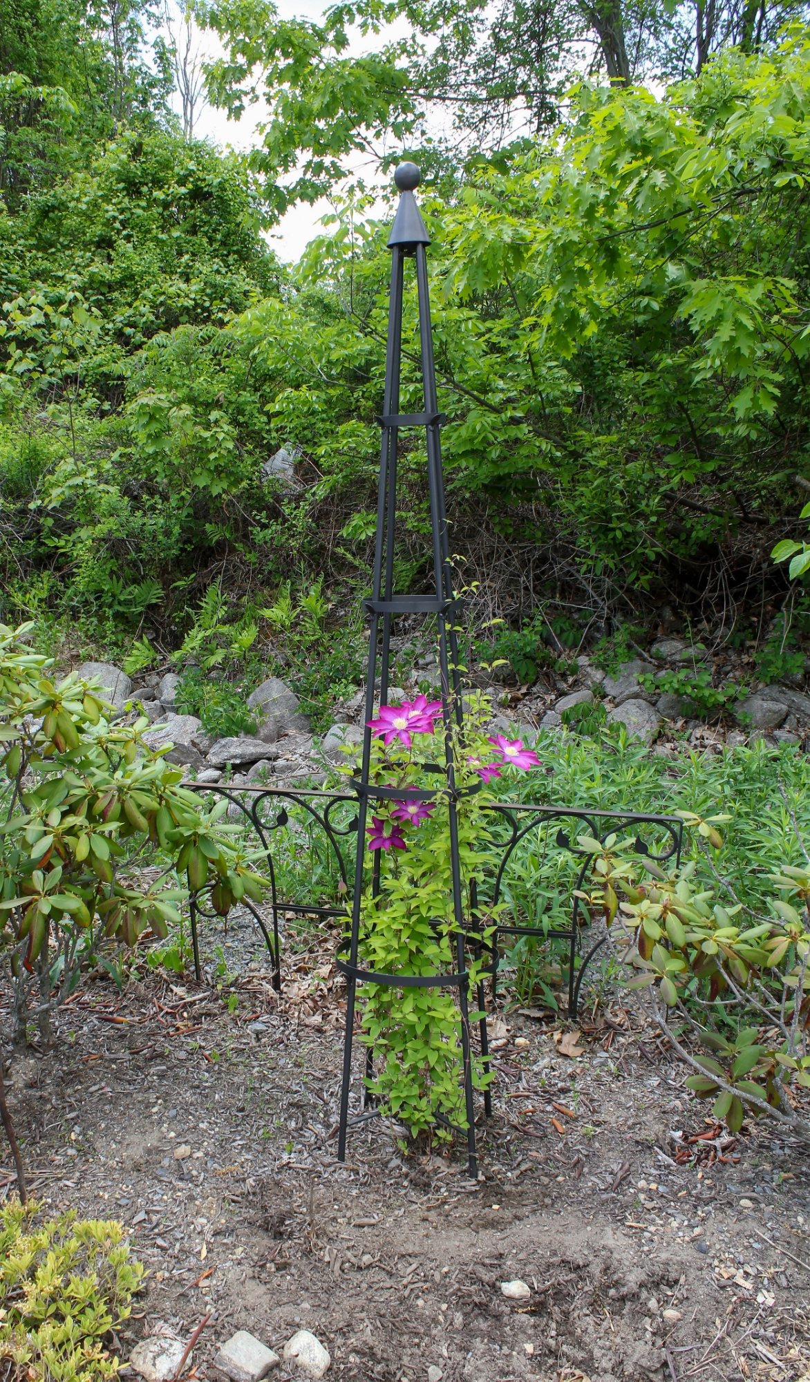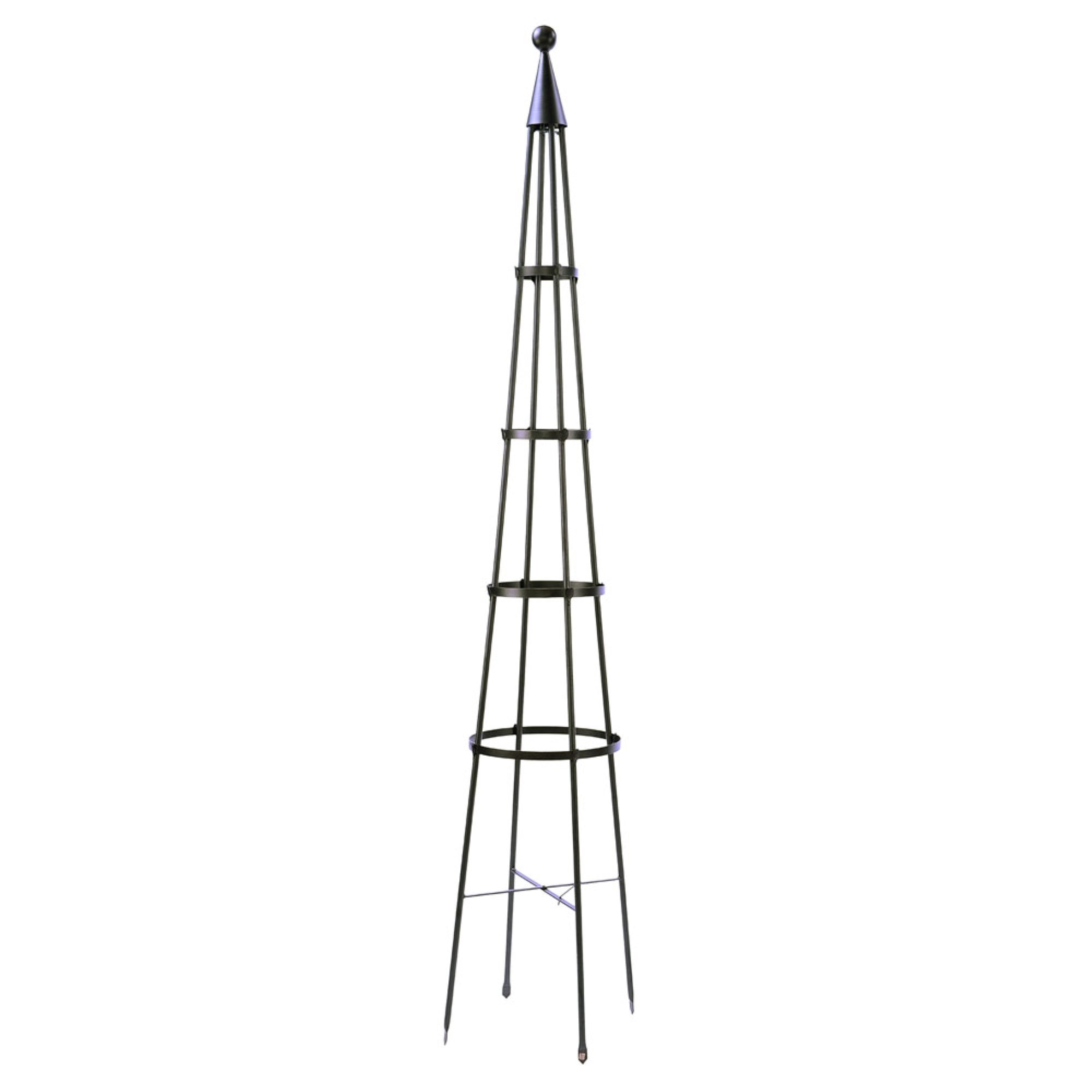 Create an elegant garden with a handcrafted wrought-iron trellis by Achla Designs. We make a wide variety of sizes and decorative styles to fit every garden, offering the functionality of a sturdy plant support and the artistic beauty of an elegant wrought iron structure. With their pointed tops and ball-shaped finials, the Obelisk trellises have a playful storybook architecture reminiscent of secret gardens and enchanted forests. Plant with morning glory, sweet peas or fragrant climbing jasmine. Available in two sizes.