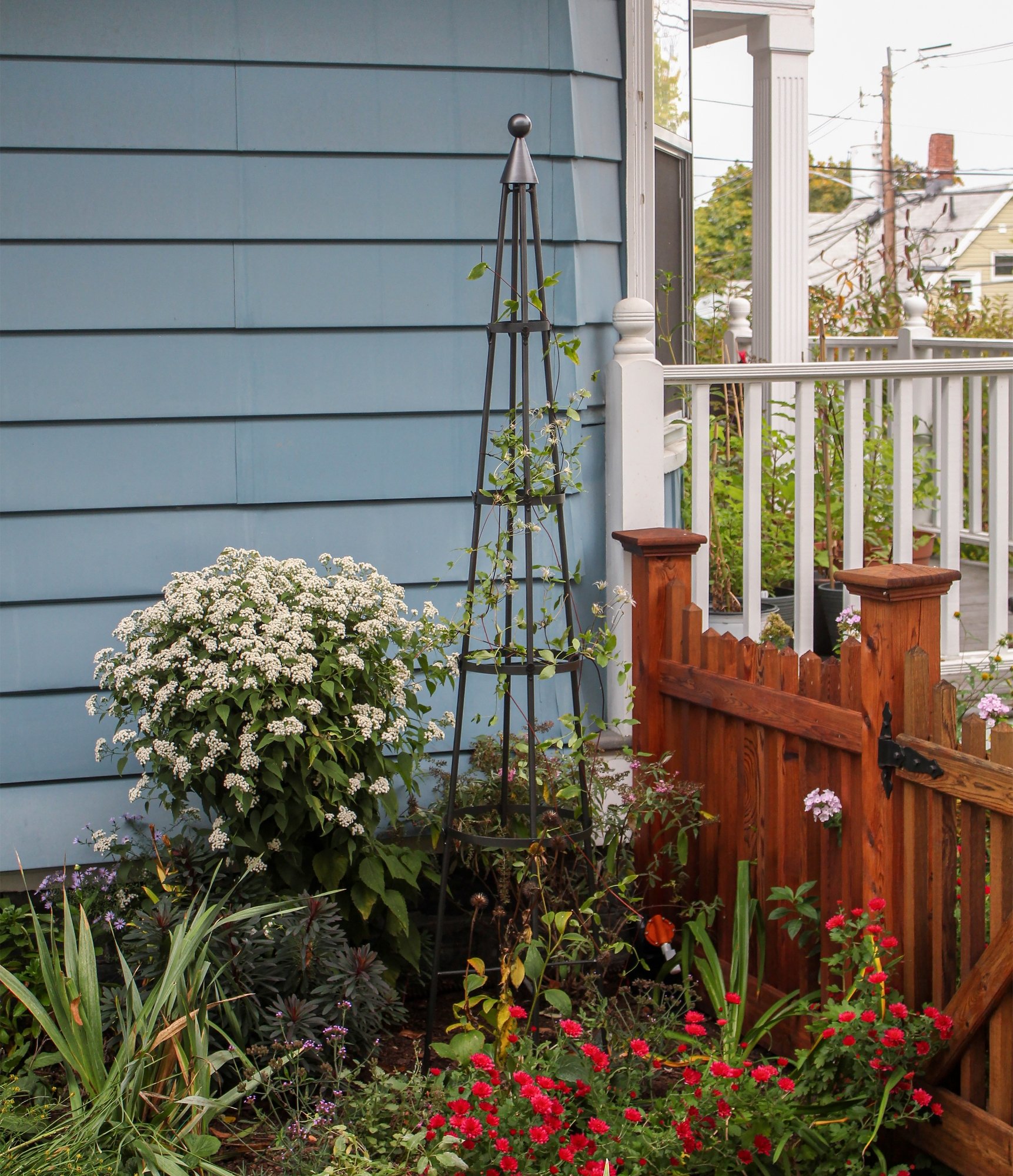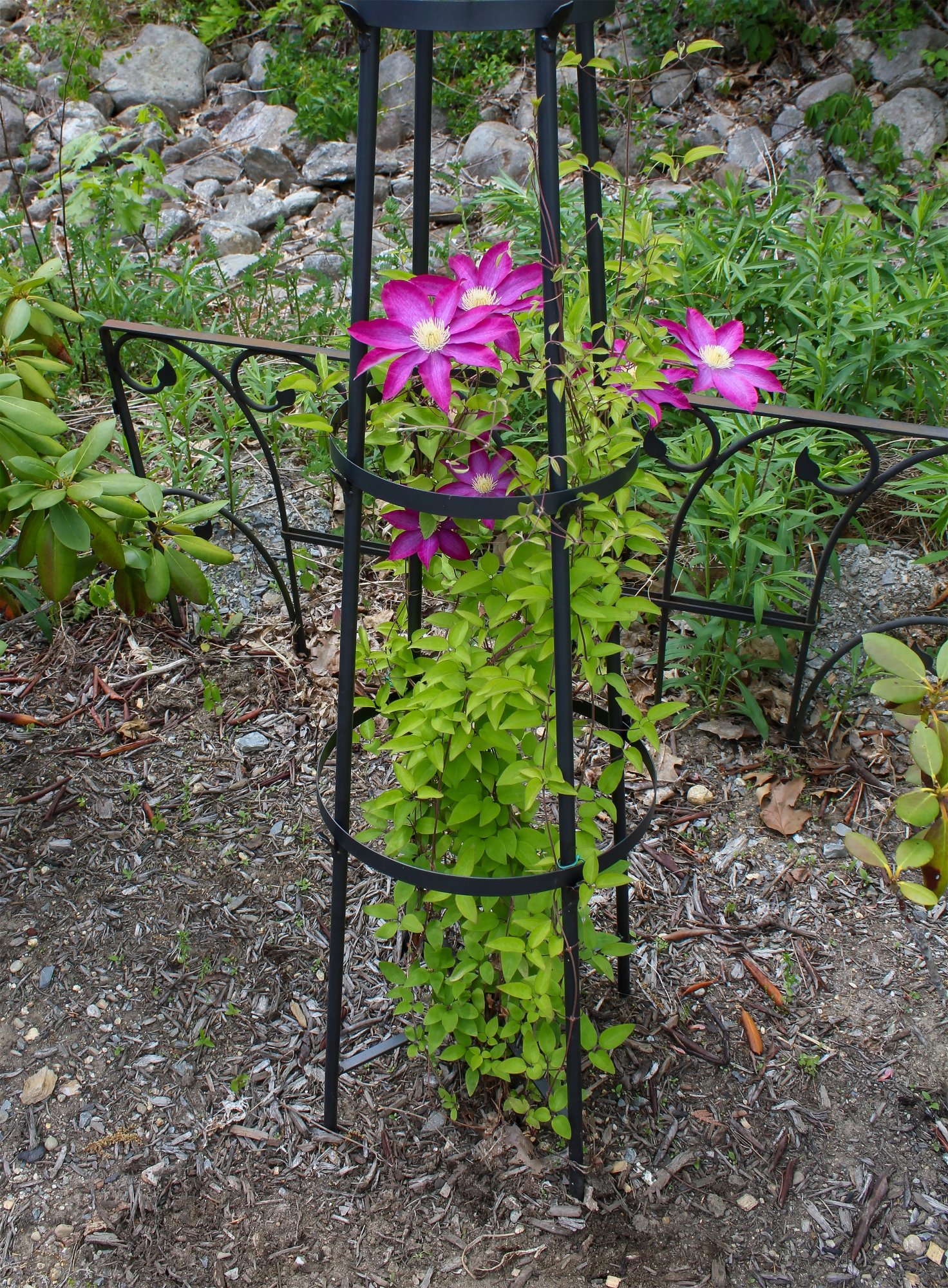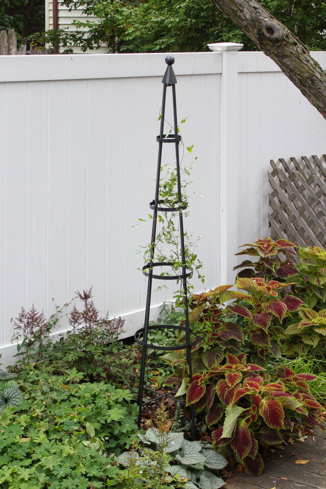 Create an elegant garden with a handcrafted wrought-iron trellis by Achla Designs. We make a wide variety of sizes and decorative styles to fit every garden, offering the functionality of a sturdy plant support and the artistic beauty of an elegant wrought iron structure. With their pointed tops and ball-shaped finials, the Obelisk trellises have a playful storybook architecture reminiscent of secret gardens and enchanted forests. Plant with morning glory, sweet peas or fragrant climbing jasmine. Available in two sizes.