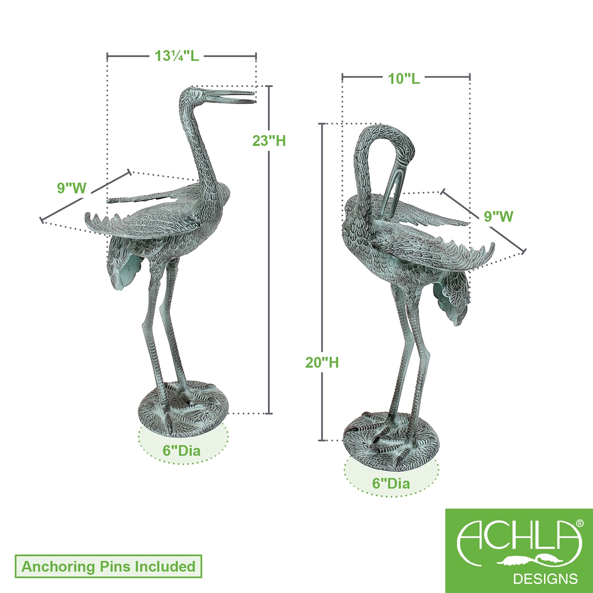 The glorious mating dances and lovely plumage of the crane has inspired much lore in many cultures. A pair of cranes mate for life and have long been seen as a symbol of joy, happiness and eternal youth. When one thousand origami cranes were made by a Japanese school-girl after World War II the crane also came to symbolize peace. These Preening Crane statues are a great addition to any backyard habitat, garden or water feature. Masterfully crafted for a realistic appearance, in two poses, Crane statues make an excellent gift for weddings, garden enthusiasts and bird lovers. For years, Achla Designs has been creating unique, European-inspired garden accessories that suit decoration tastes of all kinds. Make sure that your front and back yard are complete with the best in outdoor decor from Achla Designs.