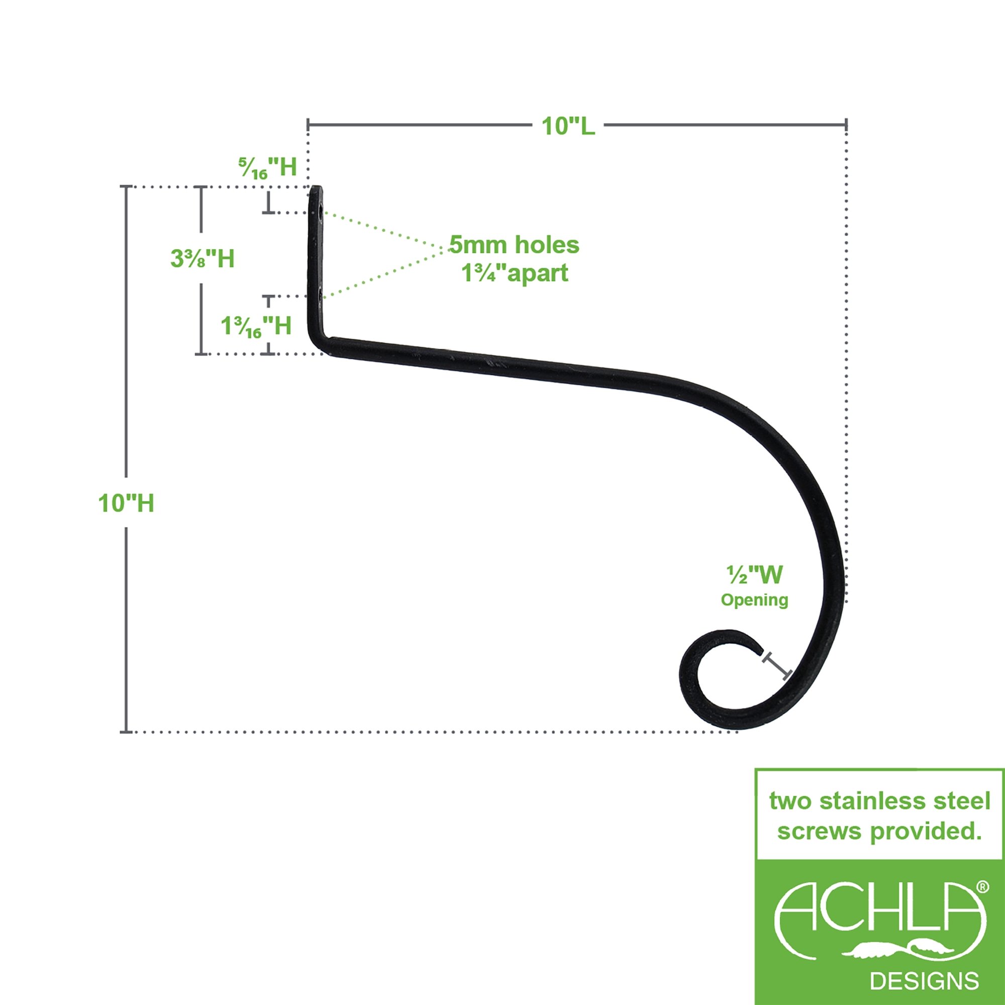 This Downturned bracket is one of our most popular. It has a graceful arc that extends straight out, then tapers and curls down to finish the hook. Use for bells, bird feeders, lanterns and hanging planters or baskets. Sold in a pack of two.