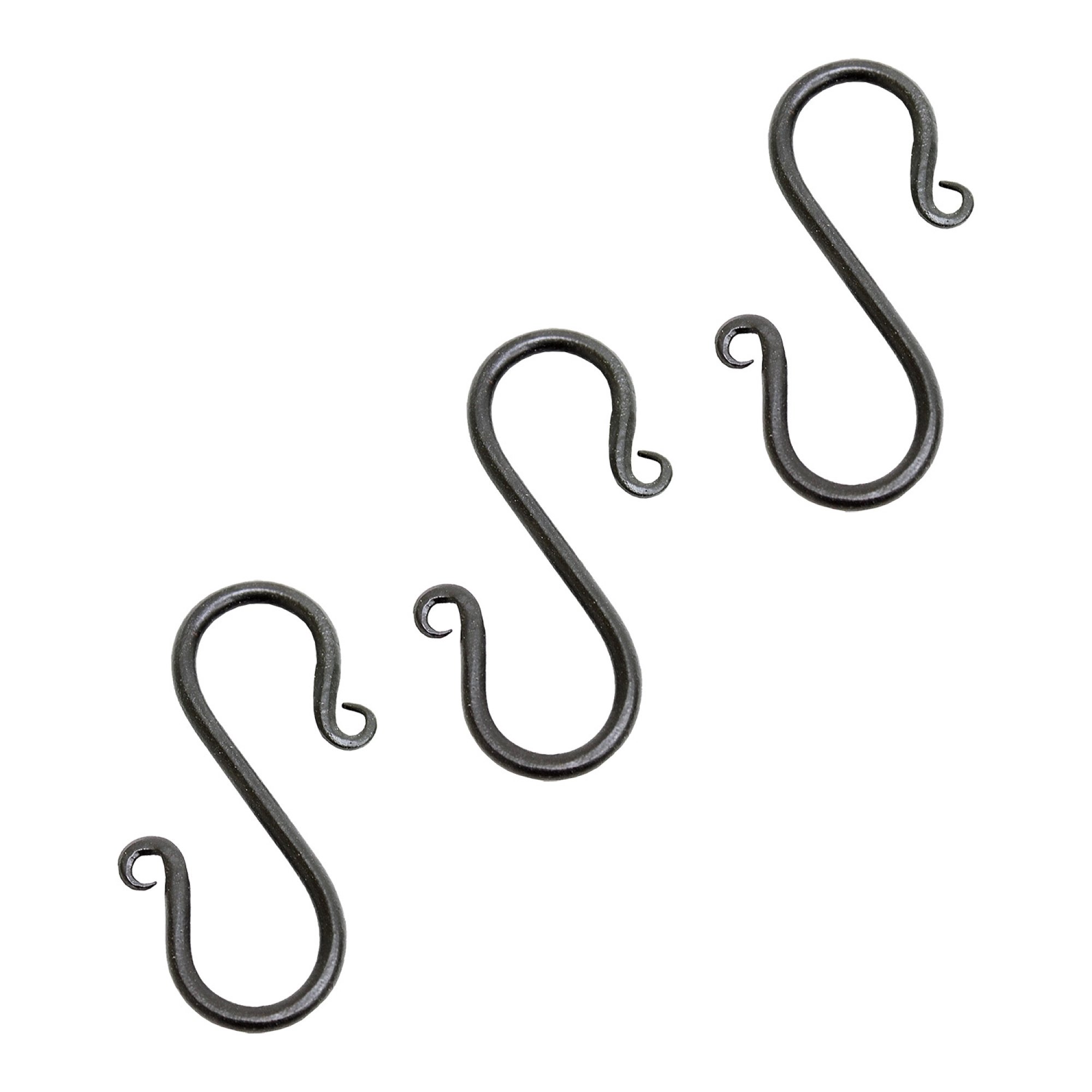 The Mini S-Hook is a small decorative hook with two opposing hooks. Use it for hanging a handle from a loop, or connecting any two loops to form a chain. Sold in a pack of three.