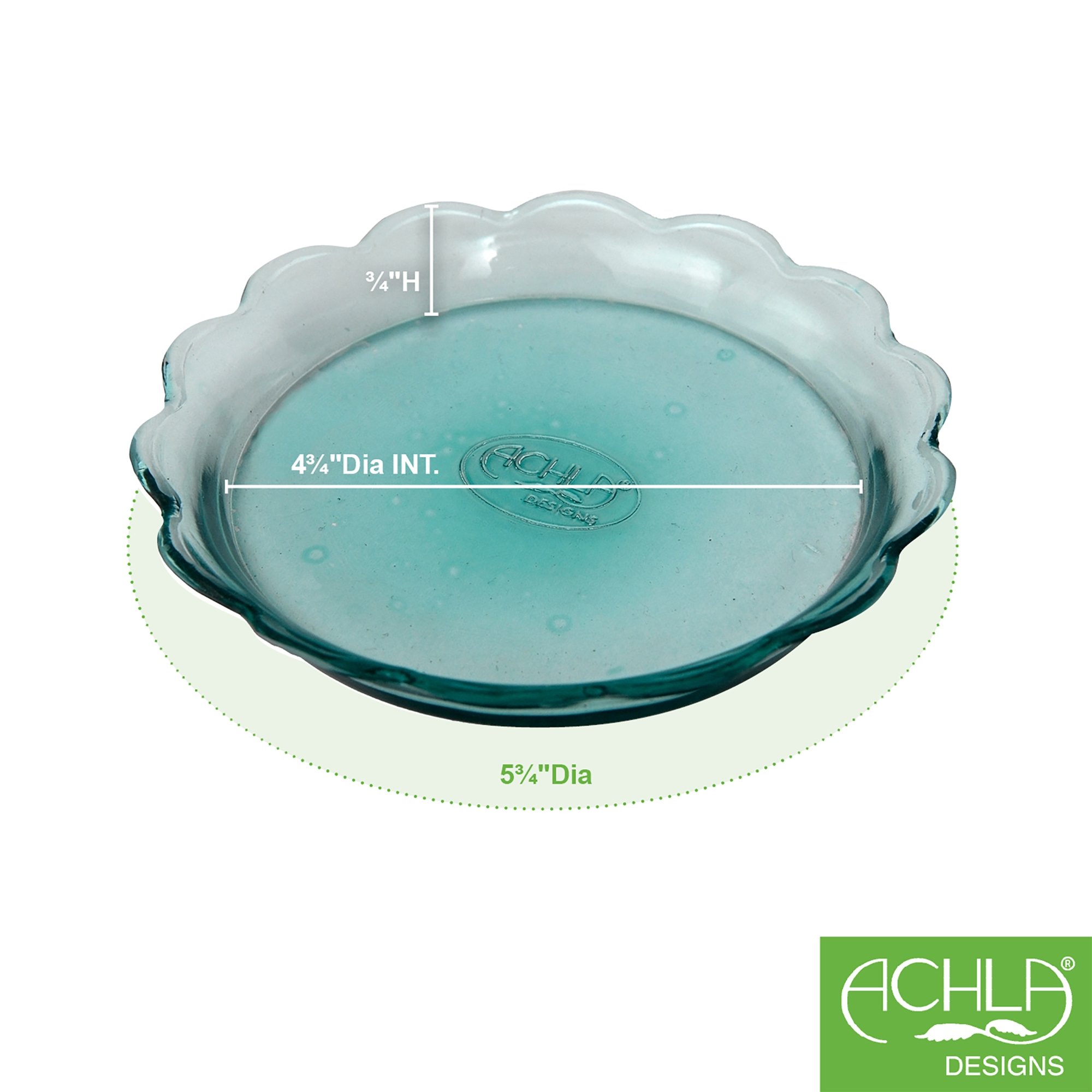 Pale green with a decorative rim, this tray makes an attractive saucer placed under pots to catch excess water and soil. Pair with Cascading plant stand. Each tray measures 6'' Dia. Made of light green glass and sold in a pack of four.