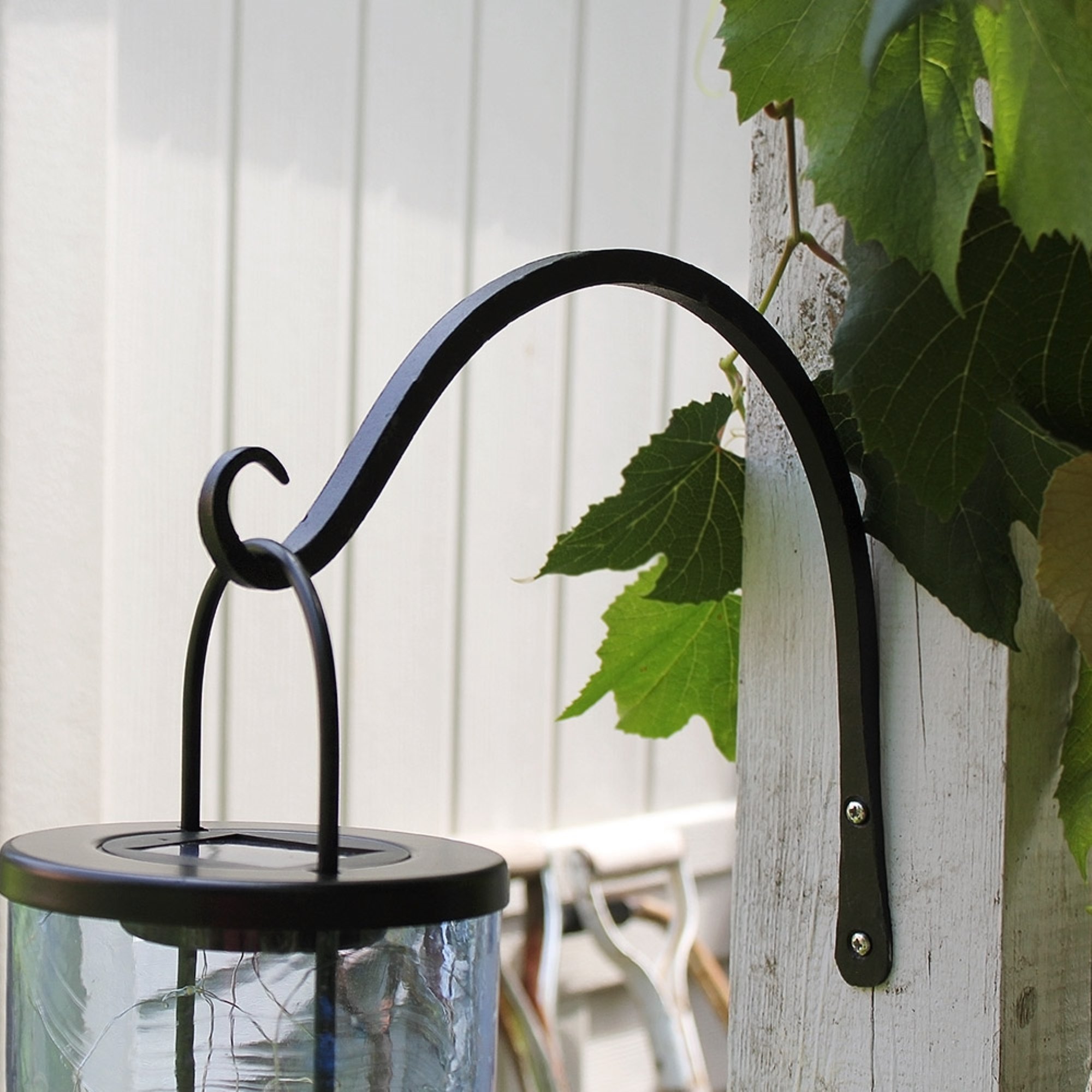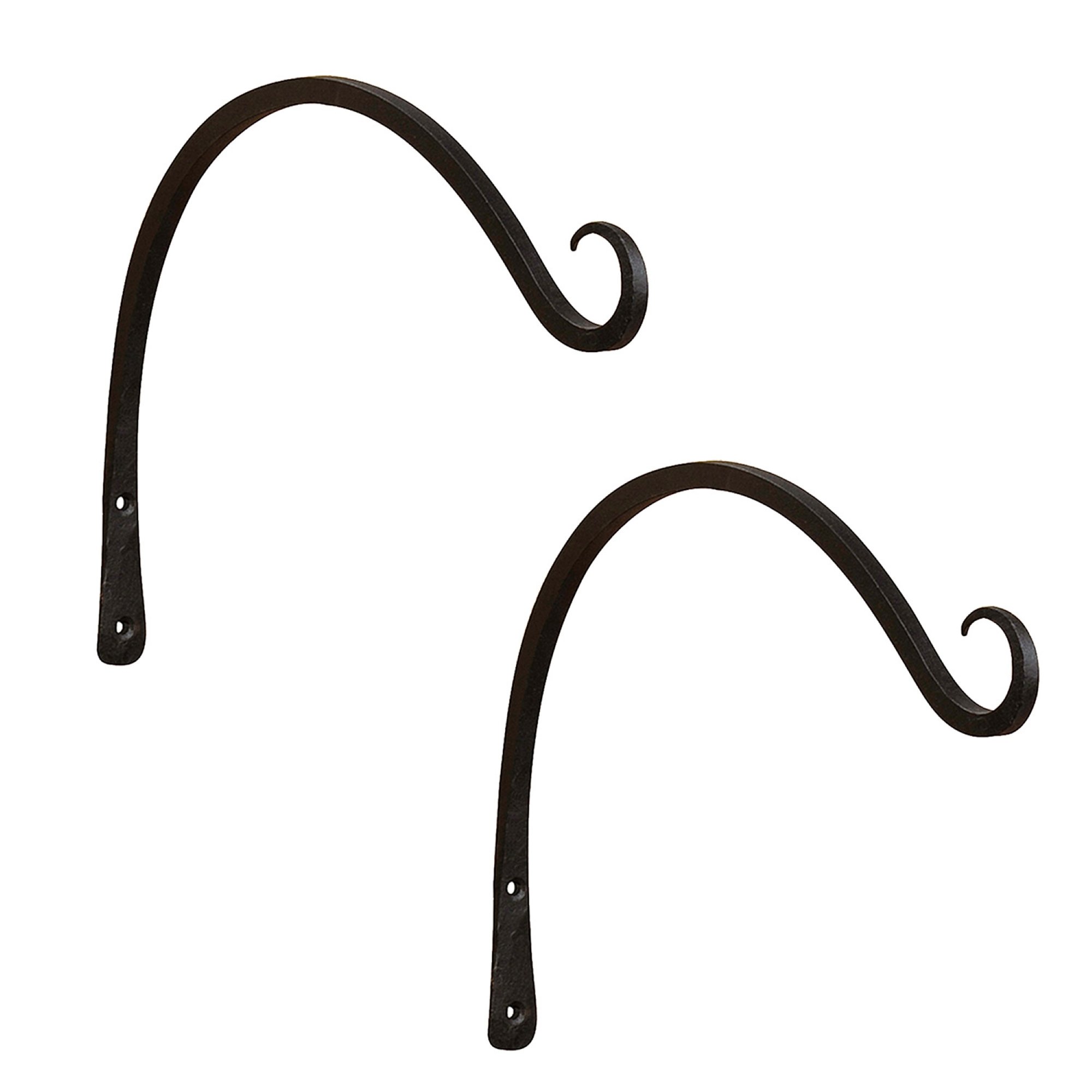 For strong, multi-use wall mounted hooks, the Achla Designs Wall Brackets and Hooks come in a wide array of shapes and sizes for hanging your favorite indoor and outdoor items- lanterns, wind chimes, bird feeders, flower baskets or planters. Hand-forged from square stock in wrought iron, the hammered look has a craftsman style that fits with a vintage, rustic, or artisan decorative style. These hooks are easily installed on any flat smooth surface with stainless steel hardware provided. Strong and durable, you can rest assured that your hanging hooks will stay looking elegant because the Black powder coated finish resists corrosion and weathering better than most conventional paint finishes, lasting many seasons. Achla Designs offers a wide array of brackets in many sizes and styles for every application. Sold in pairs.