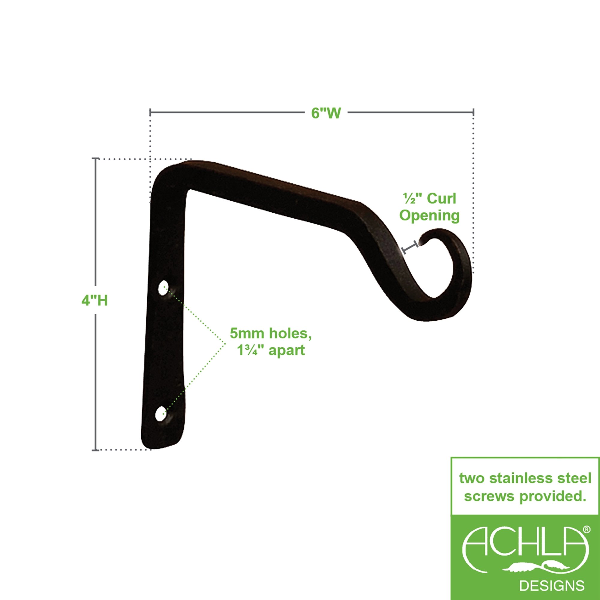 For strong, multi-use wall mounted hooks, the Achla Designs Wall Brackets and Hooks come in a wide array of shapes and sizes for hanging your favorite indoor and outdoor items- lanterns, wind chimes, bird feeders, flower baskets or planters. Hand-forged from square stock in wrought iron, the hammered look has a craftsman style that fits with a vintage, rustic, or artisan decorative style. These hooks are easily installed on any flat smooth surface with stainless steel hardware provided. Strong and durable, you can rest assured that your hanging hooks will stay looking elegant because the Black powder coated finish resists corrosion and weathering better than most conventional paint finishes, lasting many seasons. Achla Designs offers a wide array of brackets in many sizes and styles for every application. Sold in pairs.